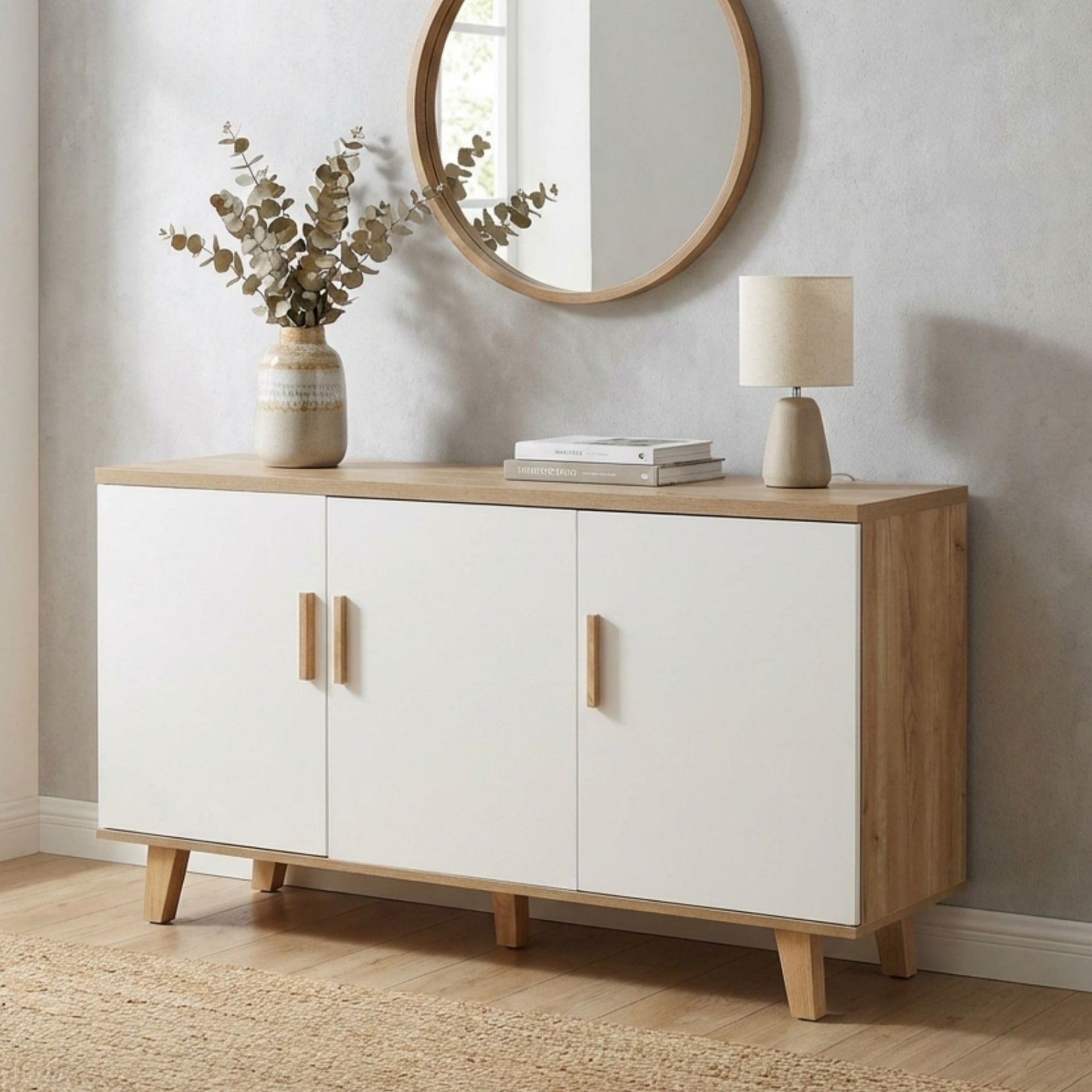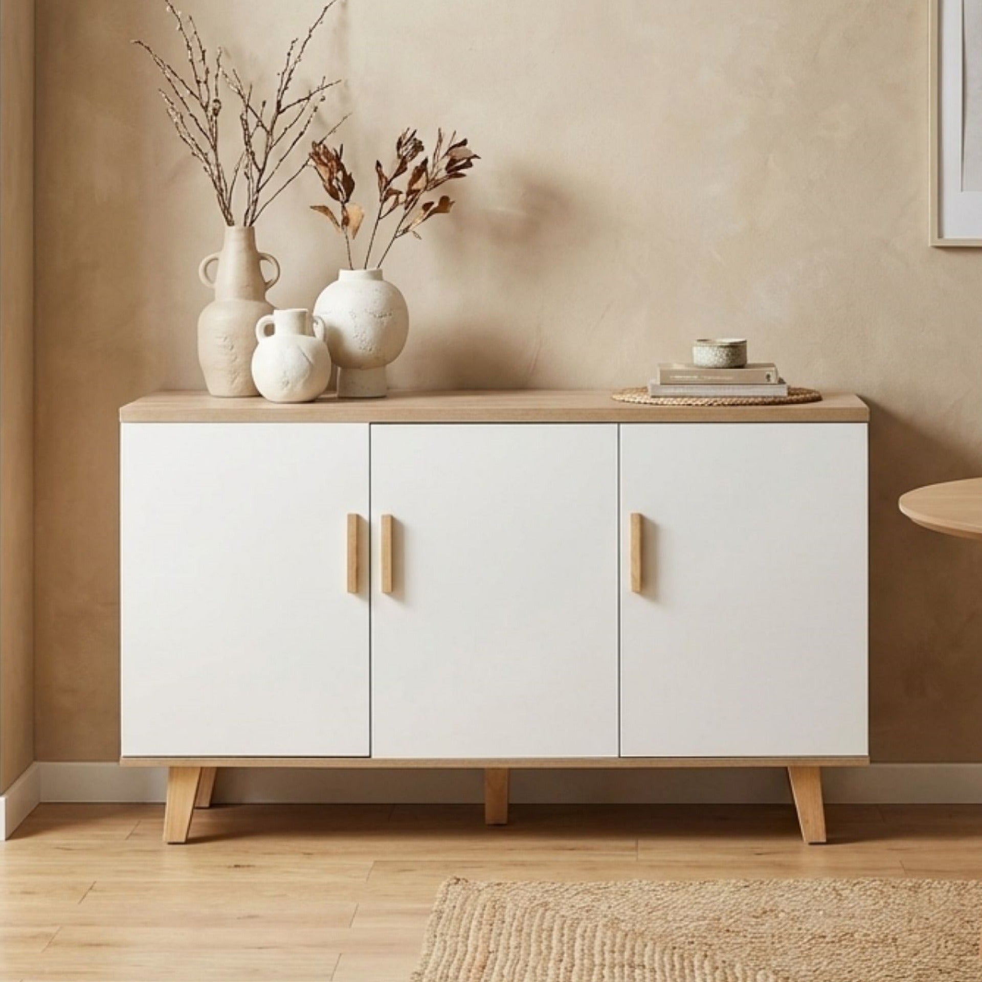 Alton Sideboard Buffet Table - Natural+White