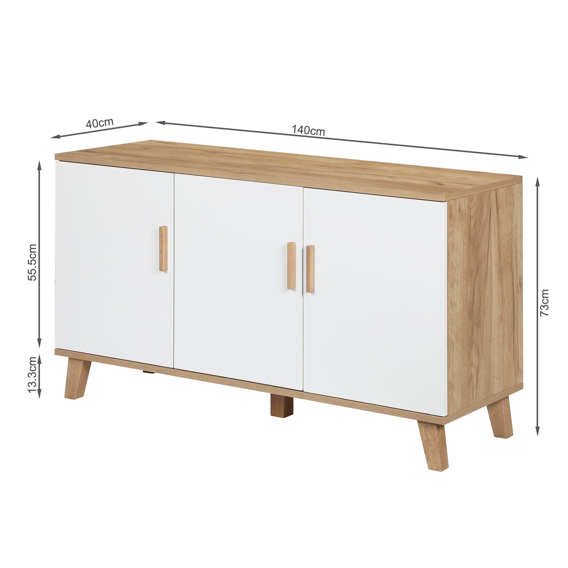This ALTON Buffet Table is one of our ALTON range products with a simple and modern style that brings warmth to your home. This buffet table is constructed of high quality particle board and features a sturdy construction that can last for years; while the scandi style legs add a unique stance and provide unwavering support for this buffet table. The flat table top offers an ample space to display the serve ware for family meals or dinner parties; come with 3 cabinet for storage plates, cutlery and napery and keep your rooms tidy.