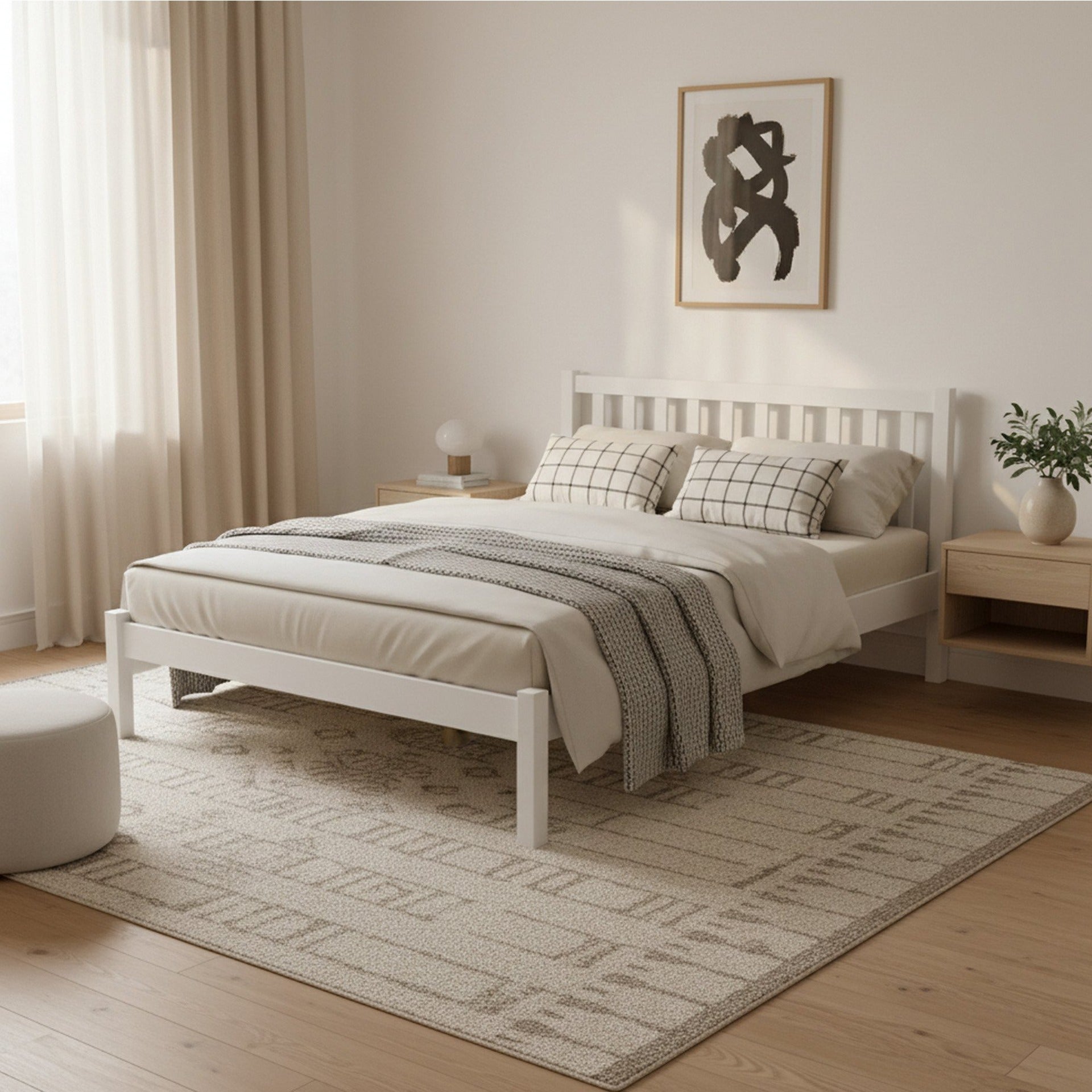 - 100% Brand New BAKER Double Wooden Bed Frame - WHITE
