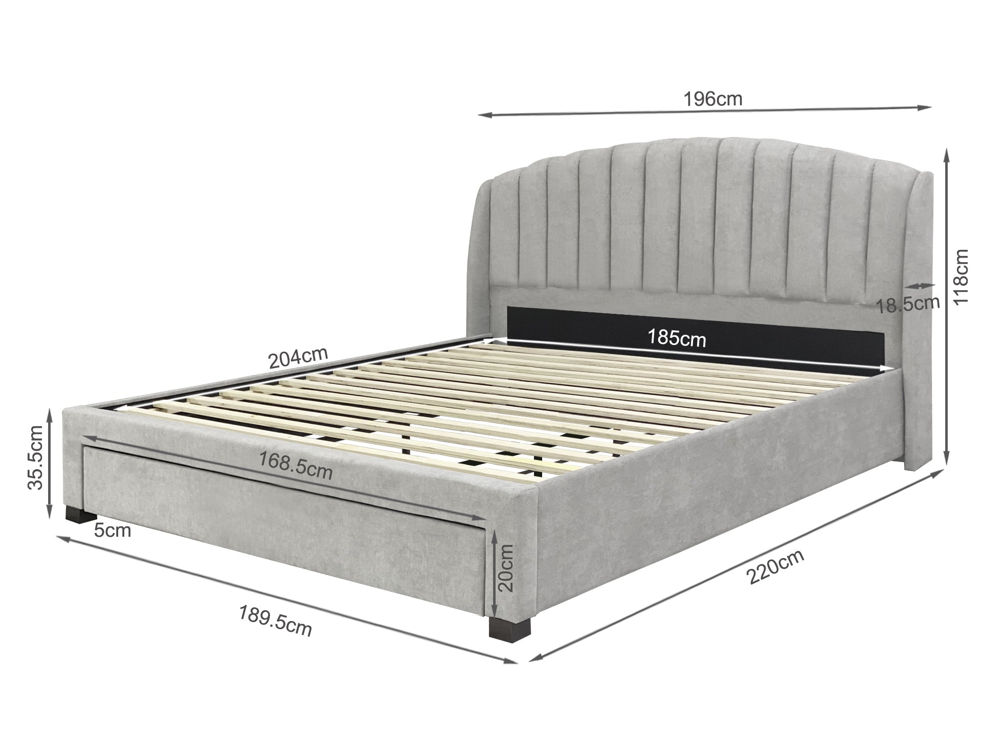 - Headboard Dimensions (W x H): 198cm x 116cm