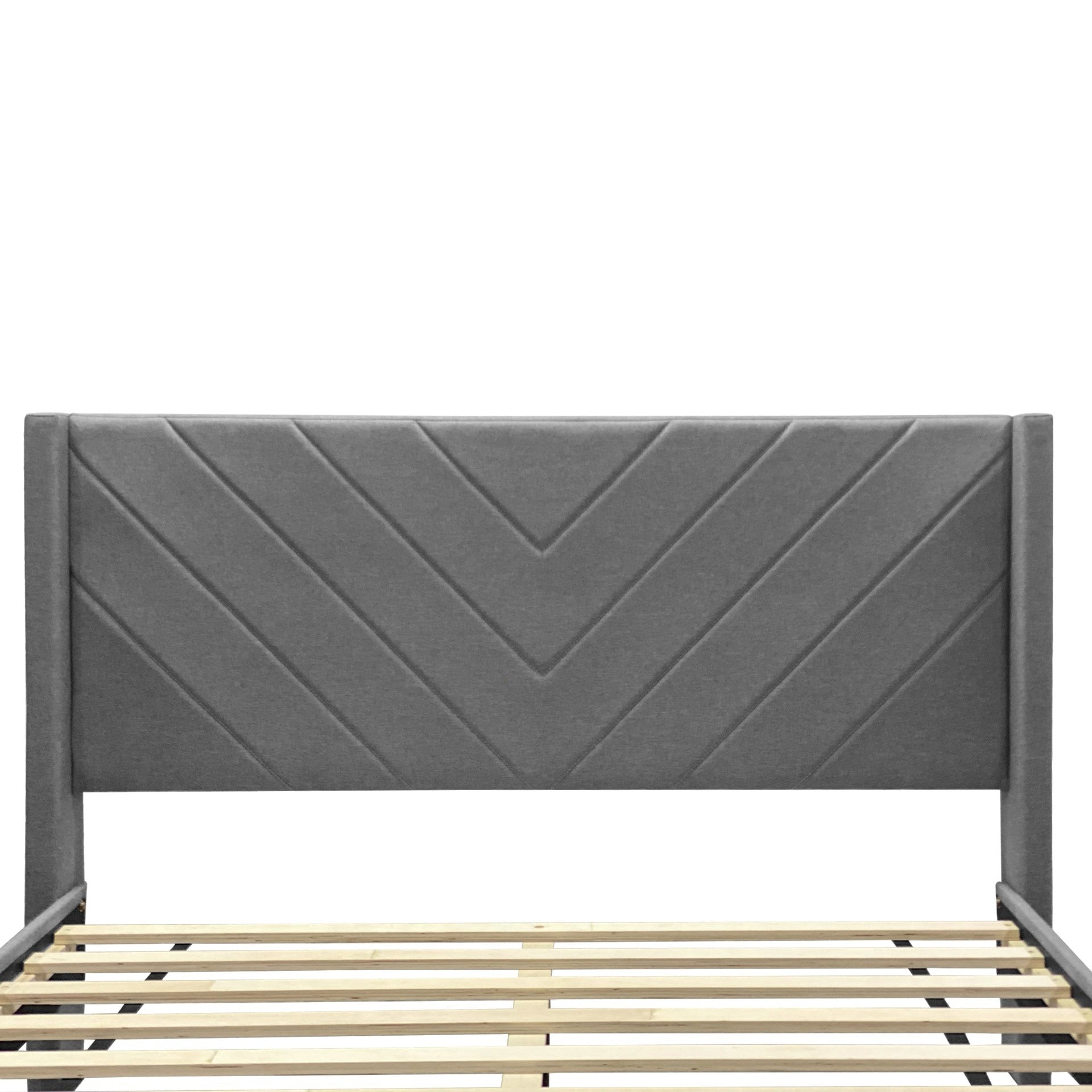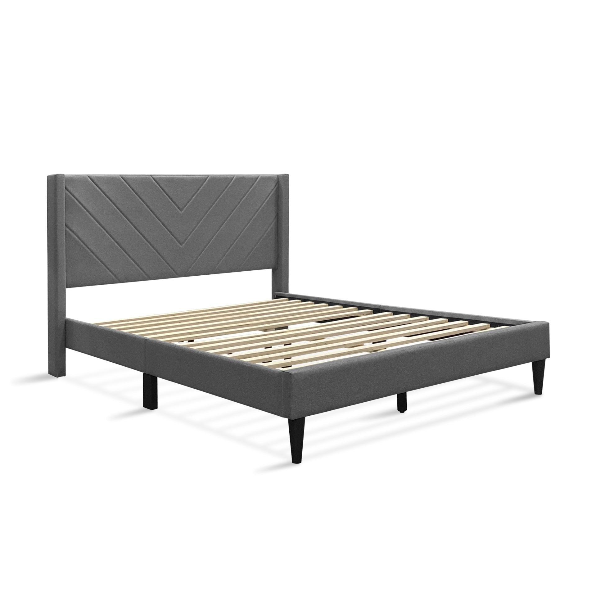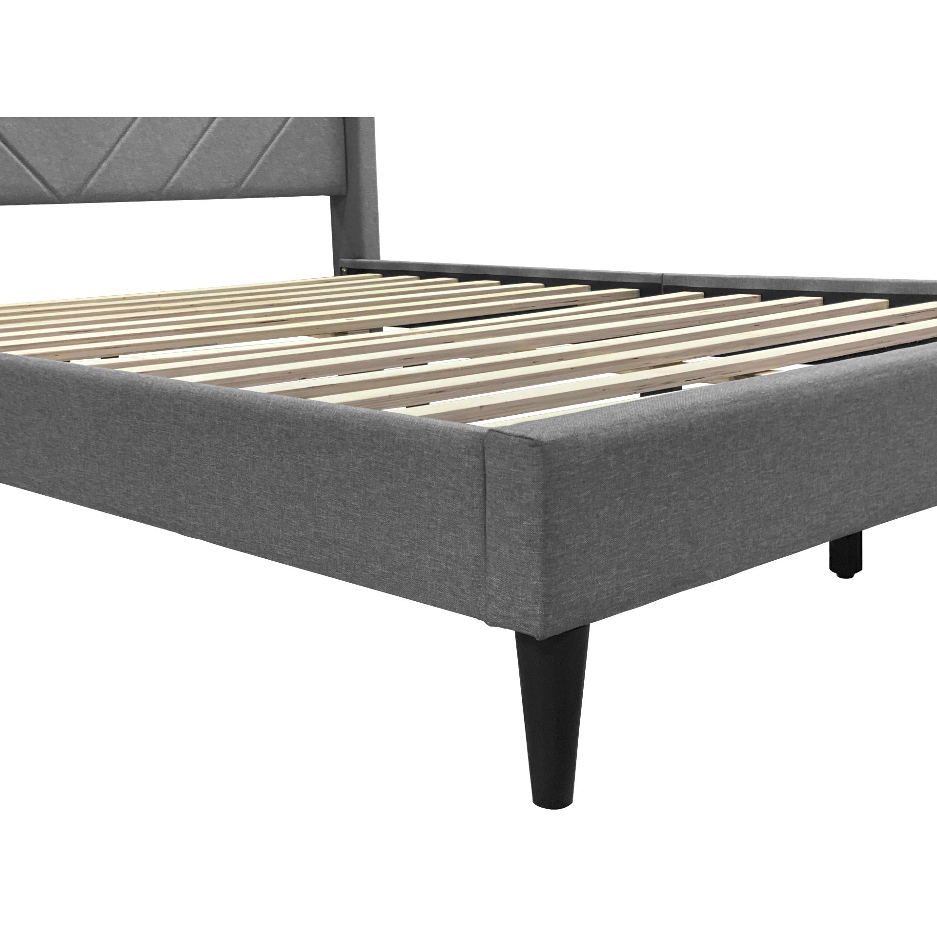 - Material: Fabric upholstery/Wooden flat slats/Plastic legs