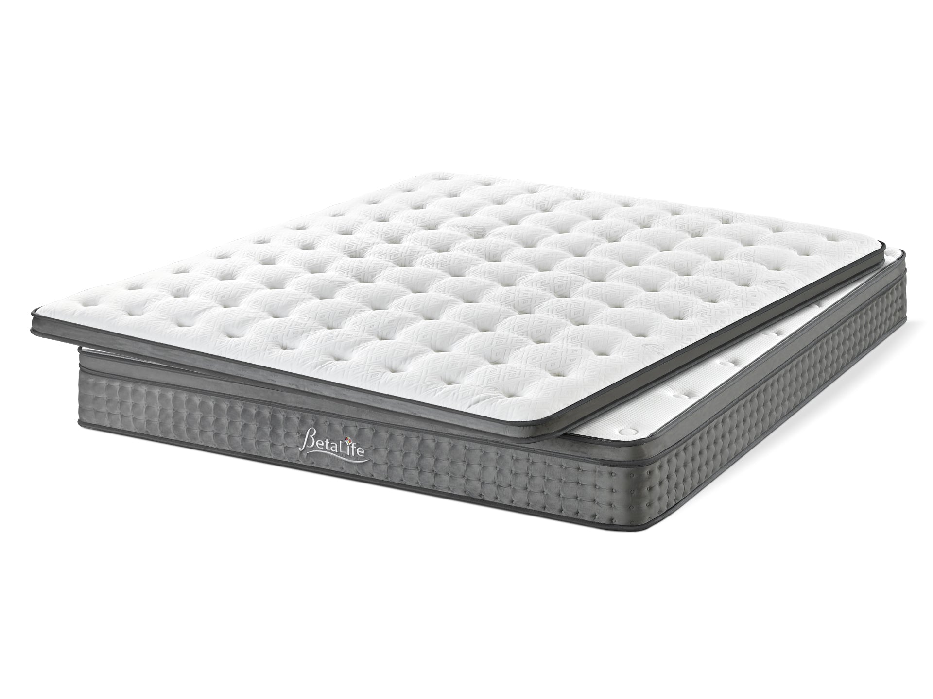 Discover unmatched sleeping comfort with the Grand Comodo 4-Sided Mattress. This luxurious mattress features an advanced pocket spring system that adapts to your body shape and weight, reducing motion transfer for an undisturbed rest. The mattress includes a base mattress and a mattress topper, each offering two types of support foam.
