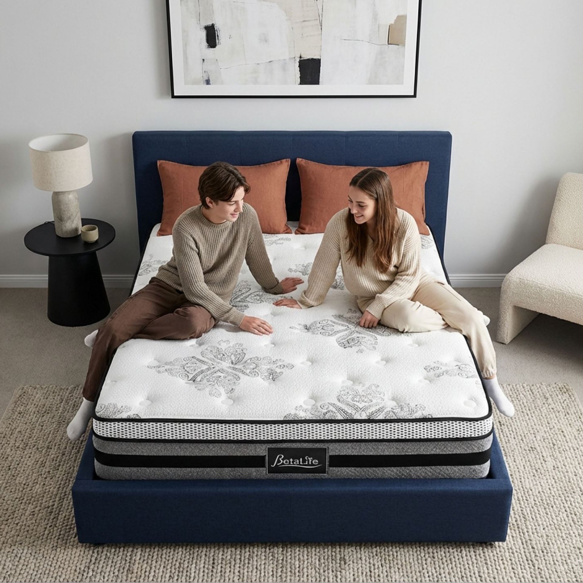 The Pocket Spring Latex Mattress, designed with a pocket sprung support system and latex comfort filling. Our unique multi-zone pocket coil spring system ensures optimal body contouring while minimizing motion transfer, providing an undisturbed night's sleep.