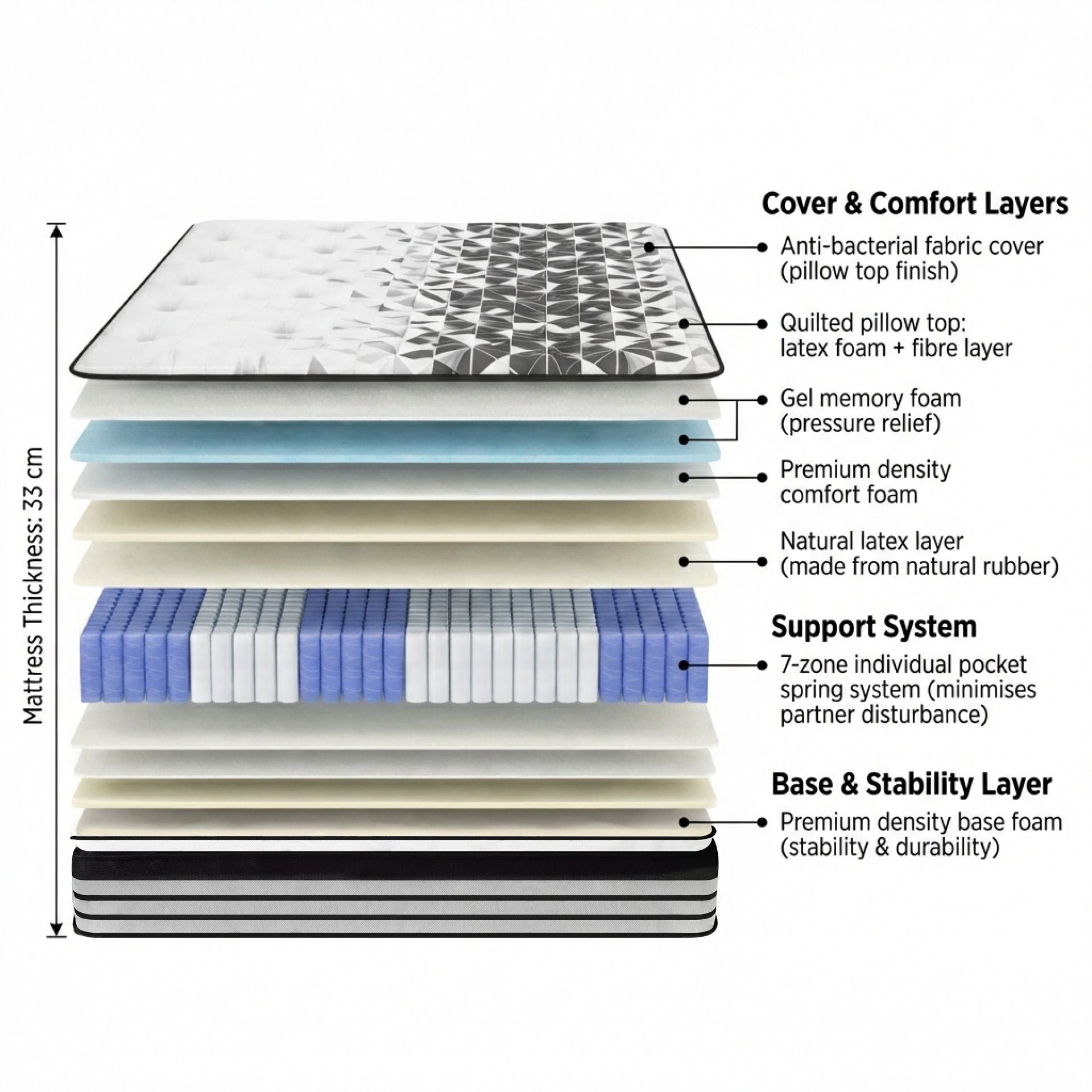- Mattress Thickness: 33cm