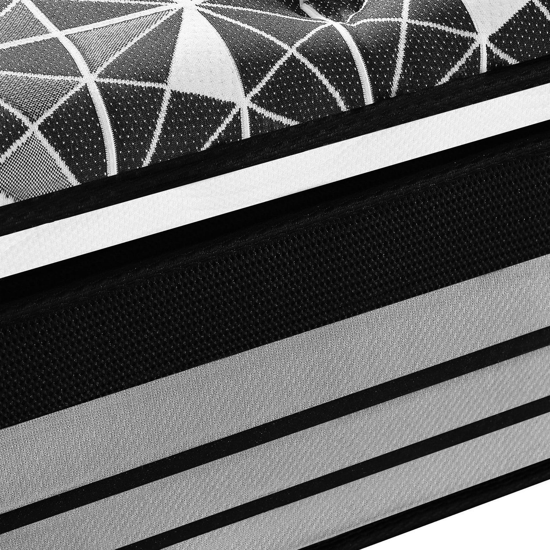 The Luxury Plus Gel Memory Mattress, a fusion of pocket spring support, gel memory foam, and latex comfort filling. Our unique multi-zone pocket coil spring system ensures optimal body contouring and minimizes motion transfer, offering undisturbed sleep.
