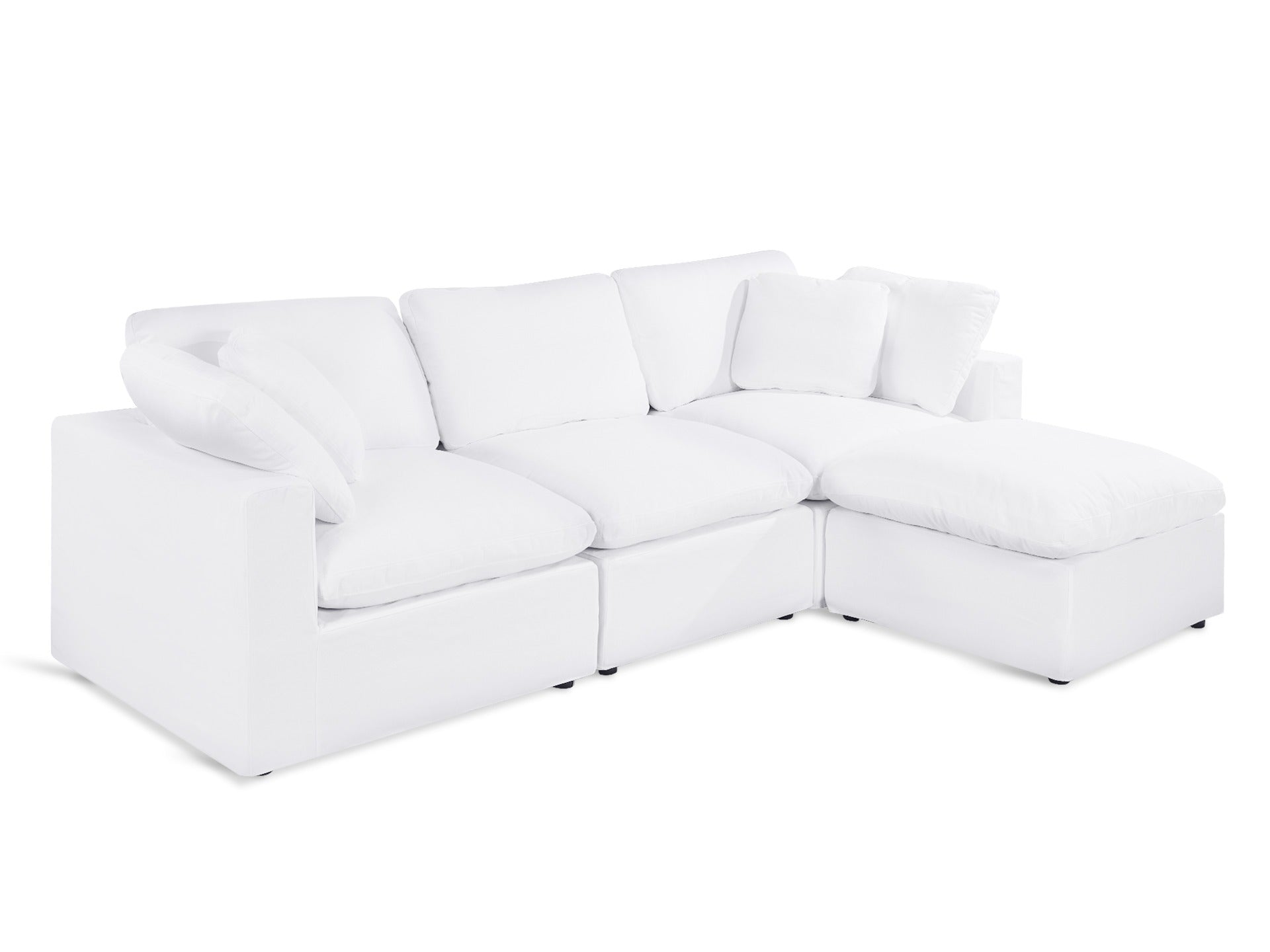 Bishopston Duck Feather Filled Modular Sofa with ottoman is all about softness, space, and simplicity. Its deep seats and thick cushions, filled with a blend of duck feather and fibre, deliver that comfort. The crisp white tone keeps things light and versatile, blending into modern interiors. With solid wooden frame for support, you can lounge and recline.