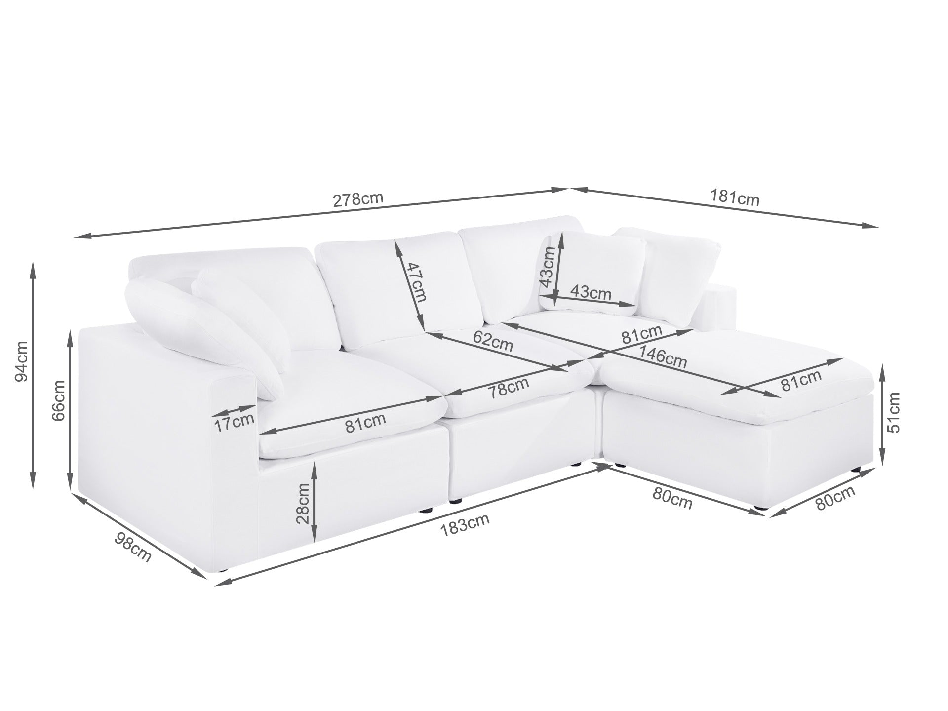 - Ottoman Dimensions (L x W x H): 83cm x 83cm x 50cm