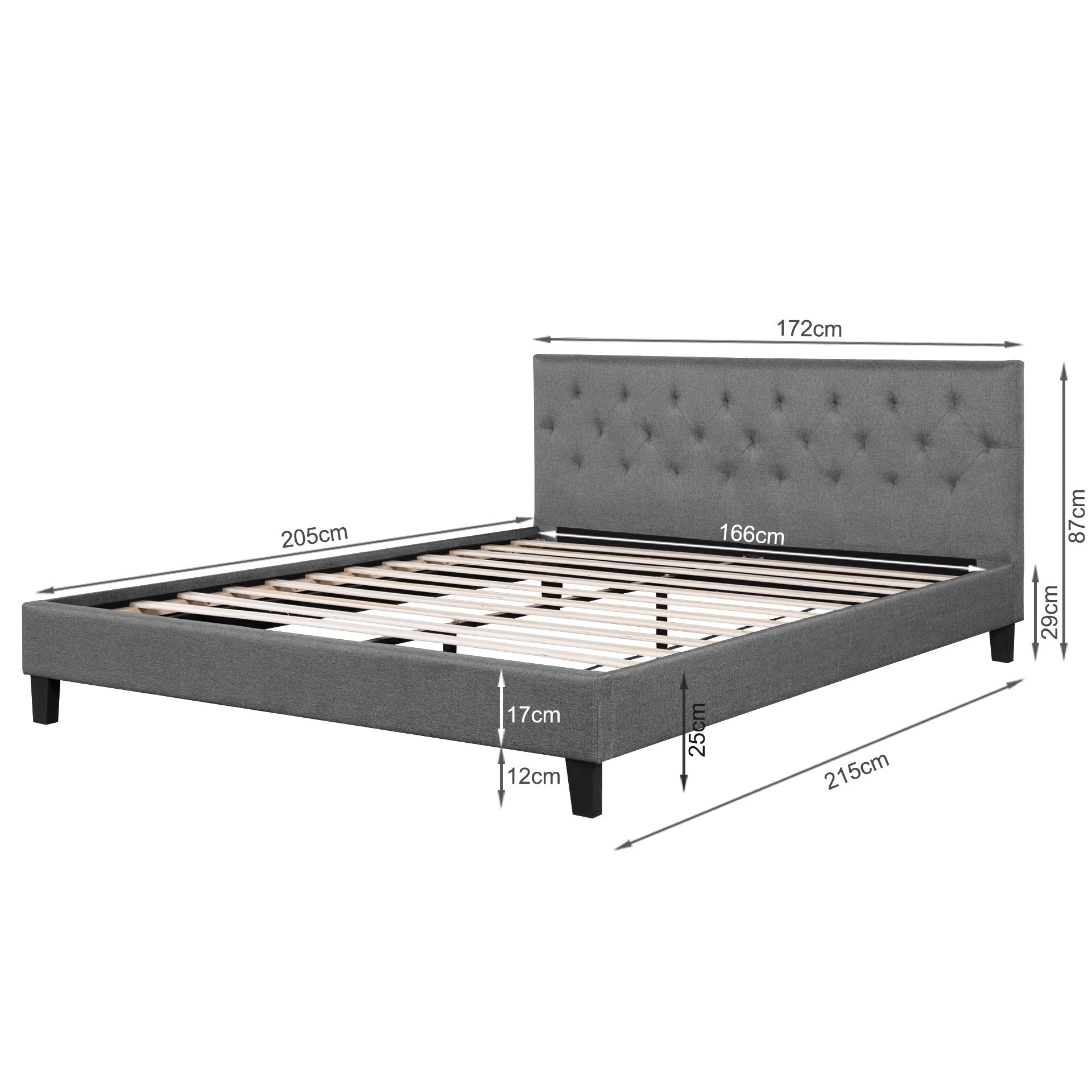 - Bed Base Dimensions (L W H): 215cm x 172cm x 17cm
