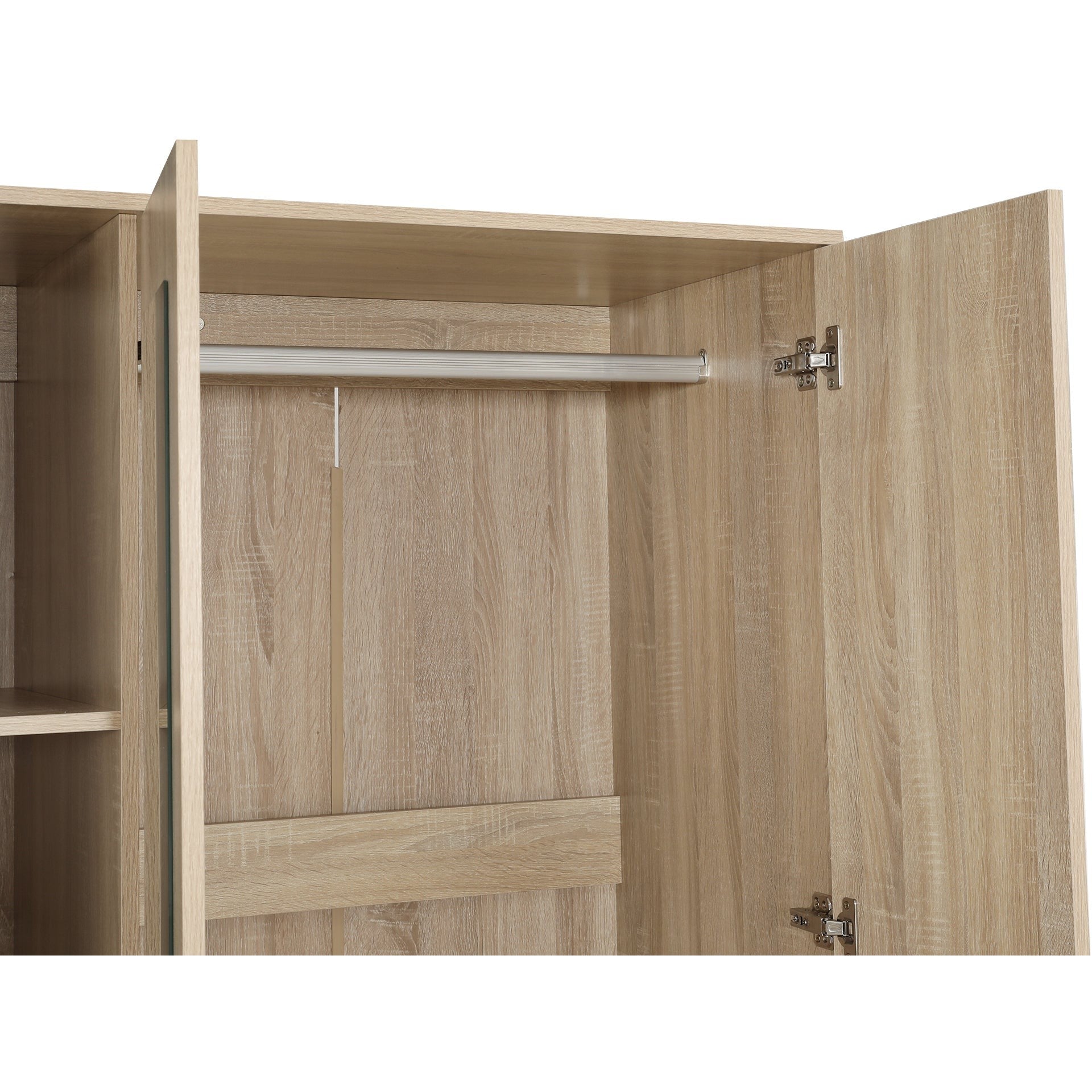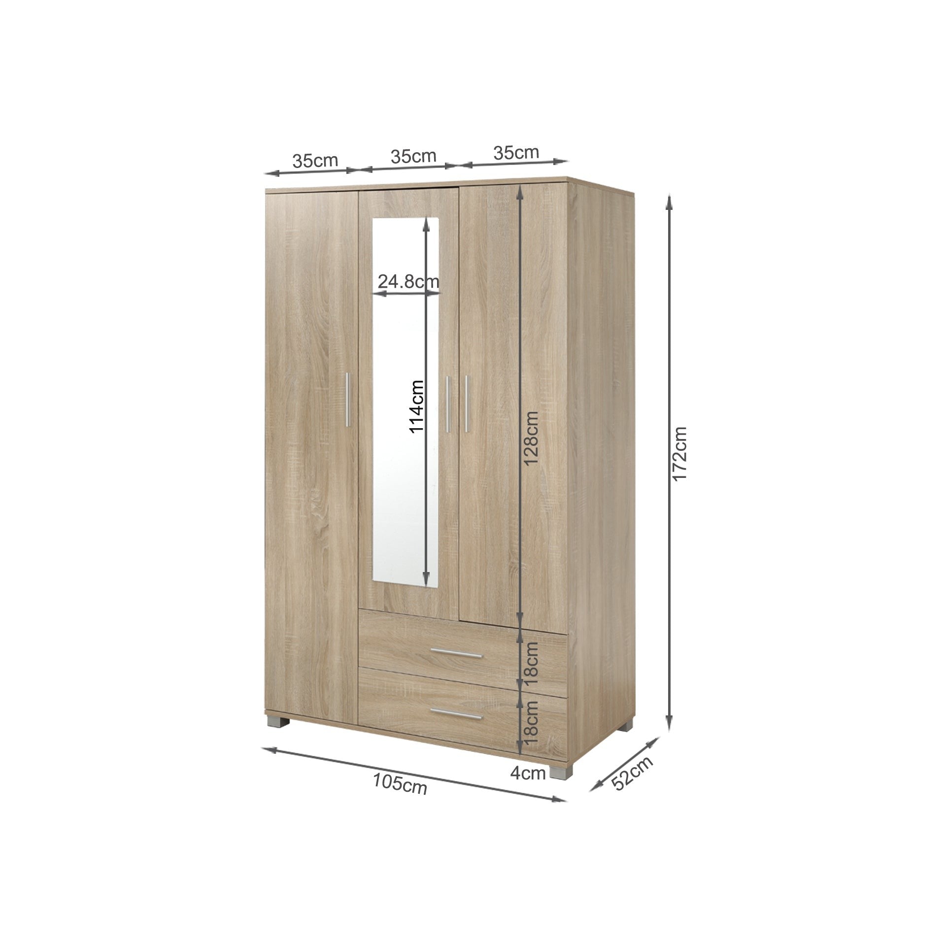 - 100% Brand New BRAM 3 Door Wardrobe Cabinet with Mirror - Oak