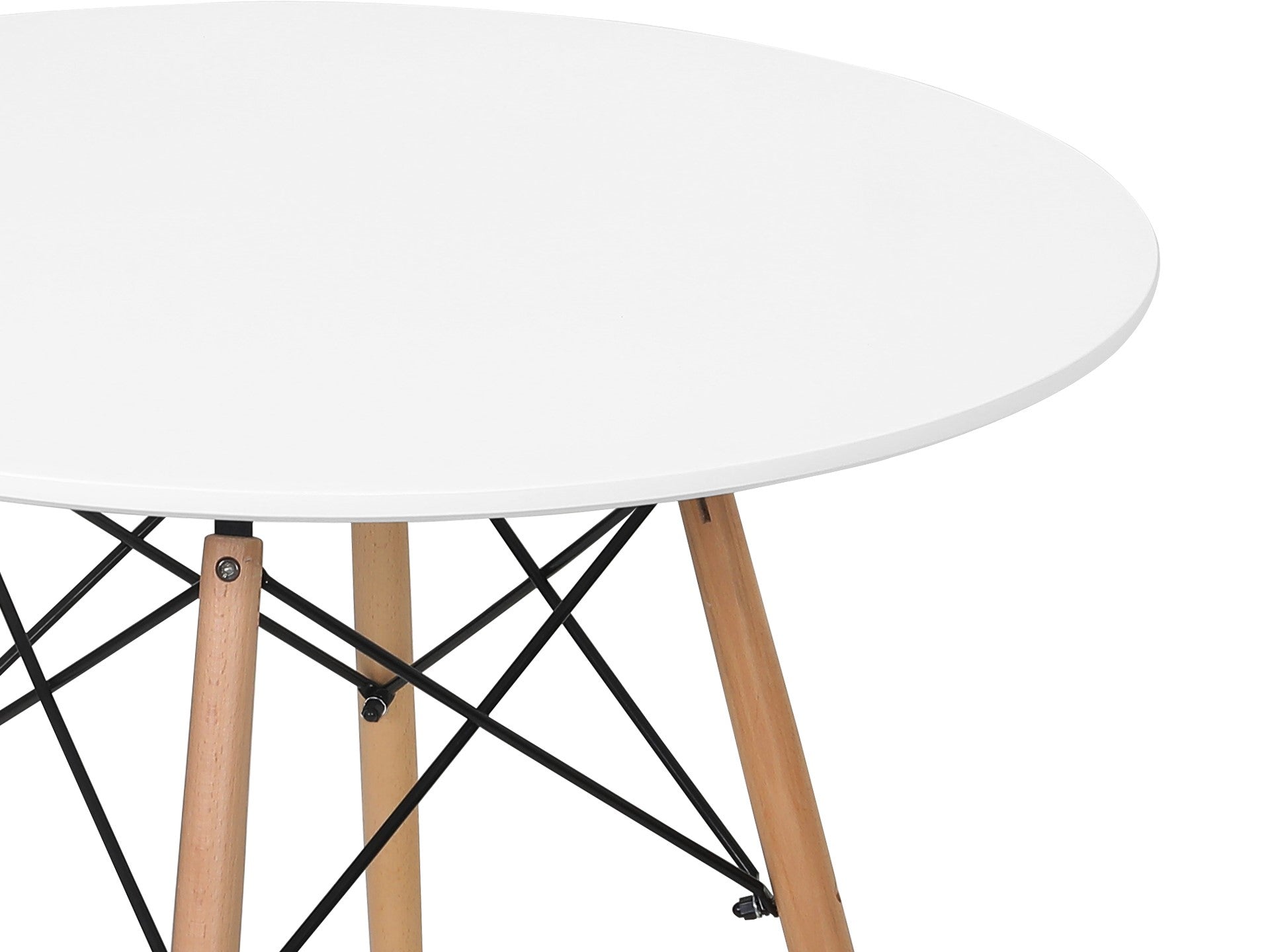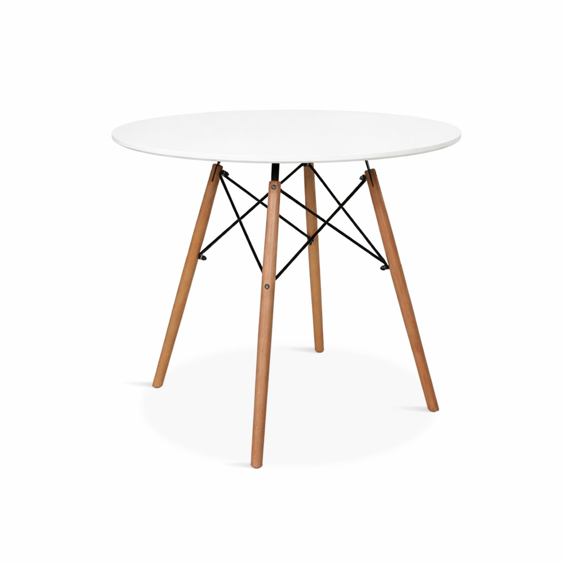 CENA Dining Table with solid beech wood legs and crossed metal frame, connected through a geometric steel frame, support a clean, monochrome tabletop that's ensure excellent stability. The Perfect size of this dining table fits great for your dining room, kitchen. Suitable for any room where you and your family gather to enjoy mealtime, the round dining table is sure to complement a wide variety of decor sensibilities from eclectic to modern. It can also be used as a coffee table in your living room, perfectly designed to suit any purpose.