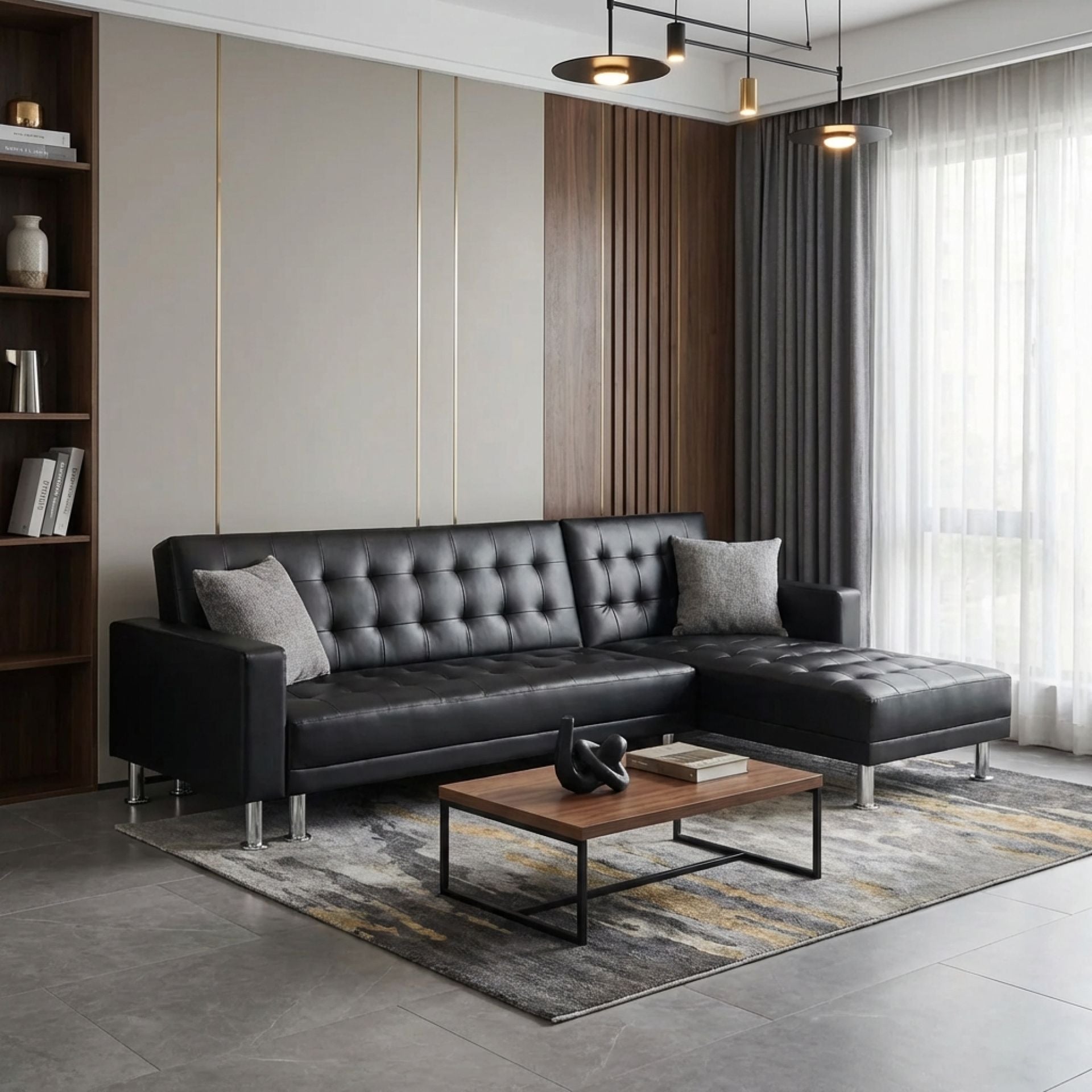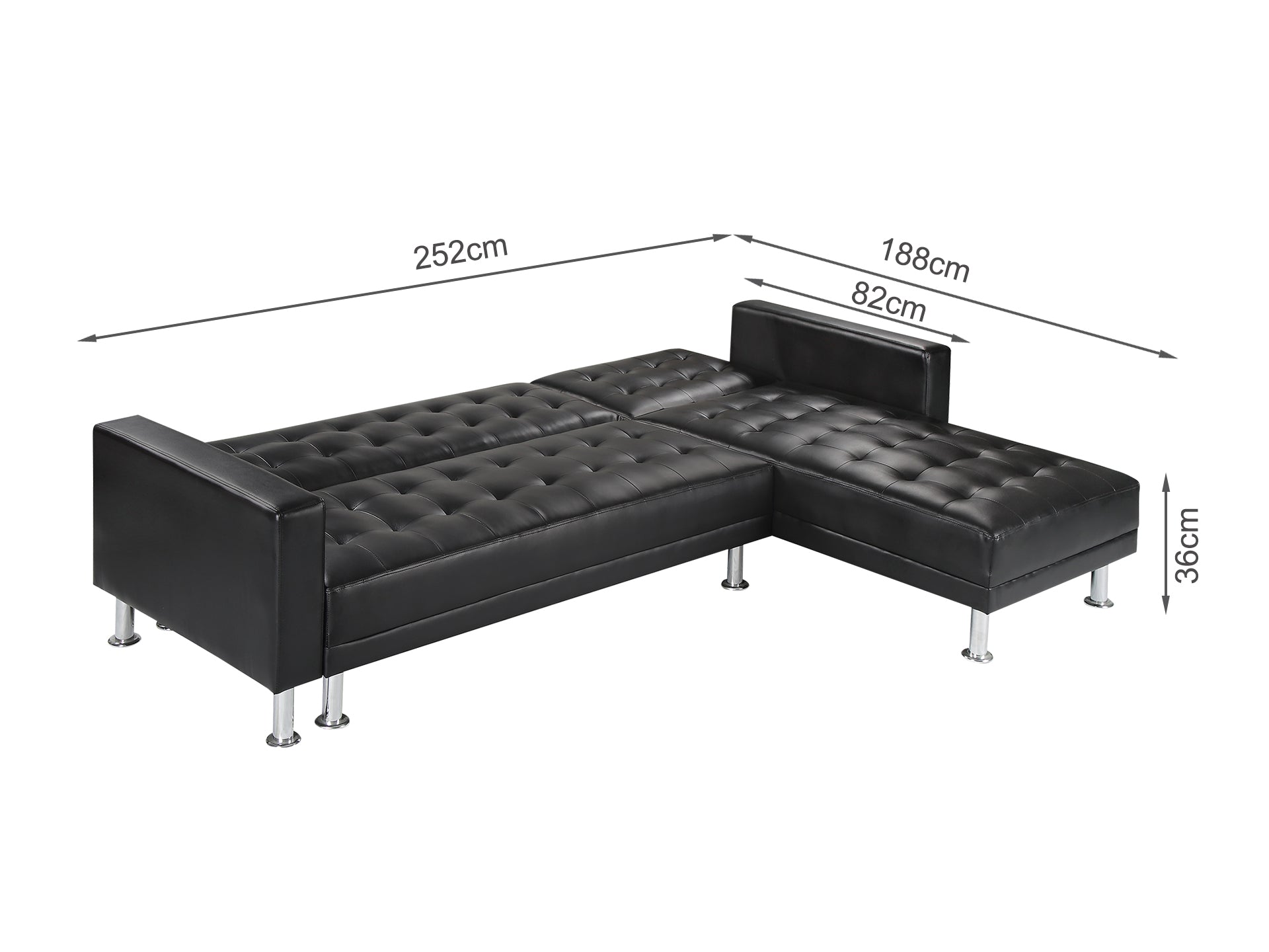 This COLORADO Sofa Bed Futon with Chaise is a beautiful, modern sofa with clean lines that offer a space saving solution is an excellent option for your living rooms, bedrooms or guest room. It not only can give you ample seating in your living room but also accommodate any unexpected guests a cozy bed. Upholstered with elegant PU Leather and chrome finished legs, the Sofa Bed is both sturdy and elegant to look at; while the extra thick and high density foam ensure great durability and stability.