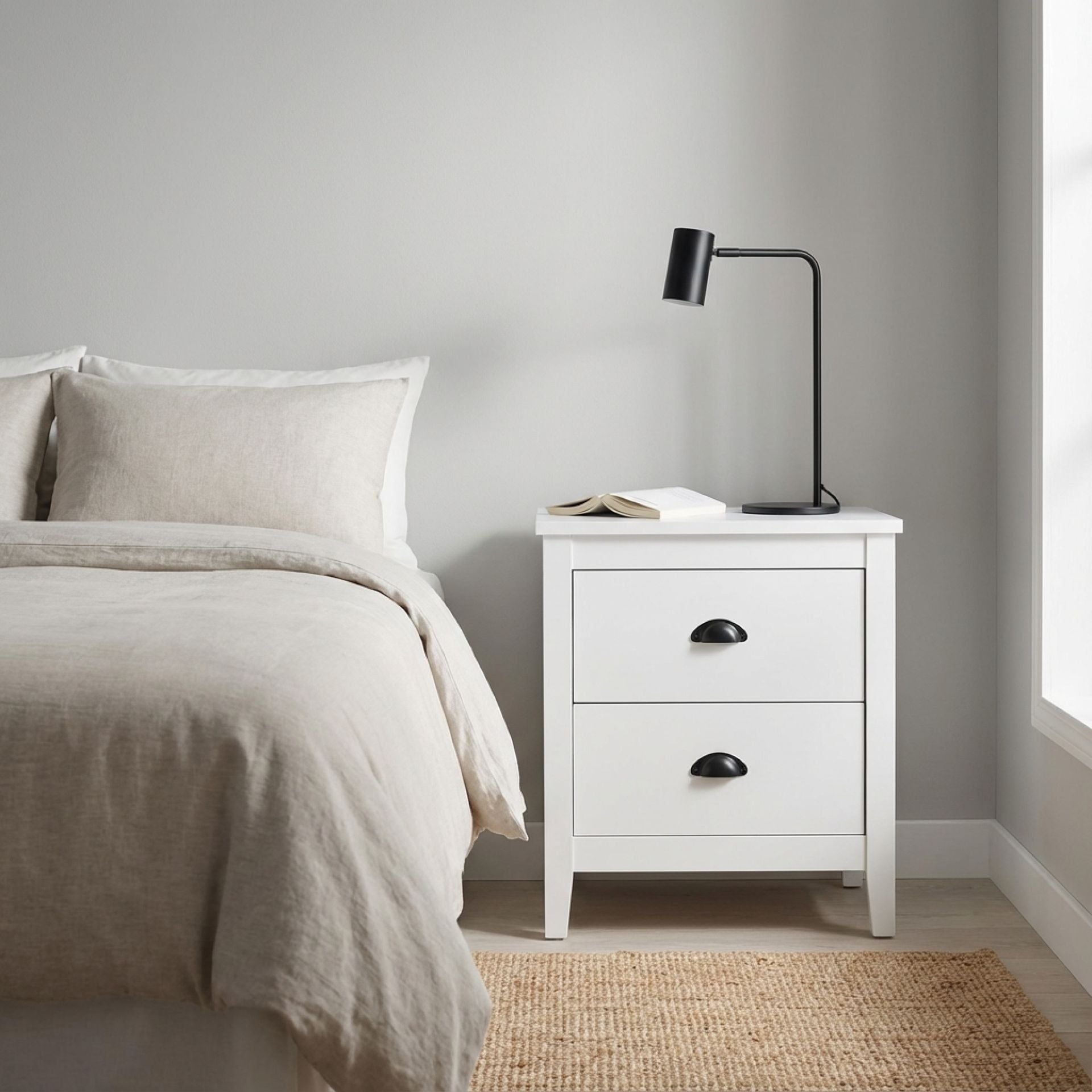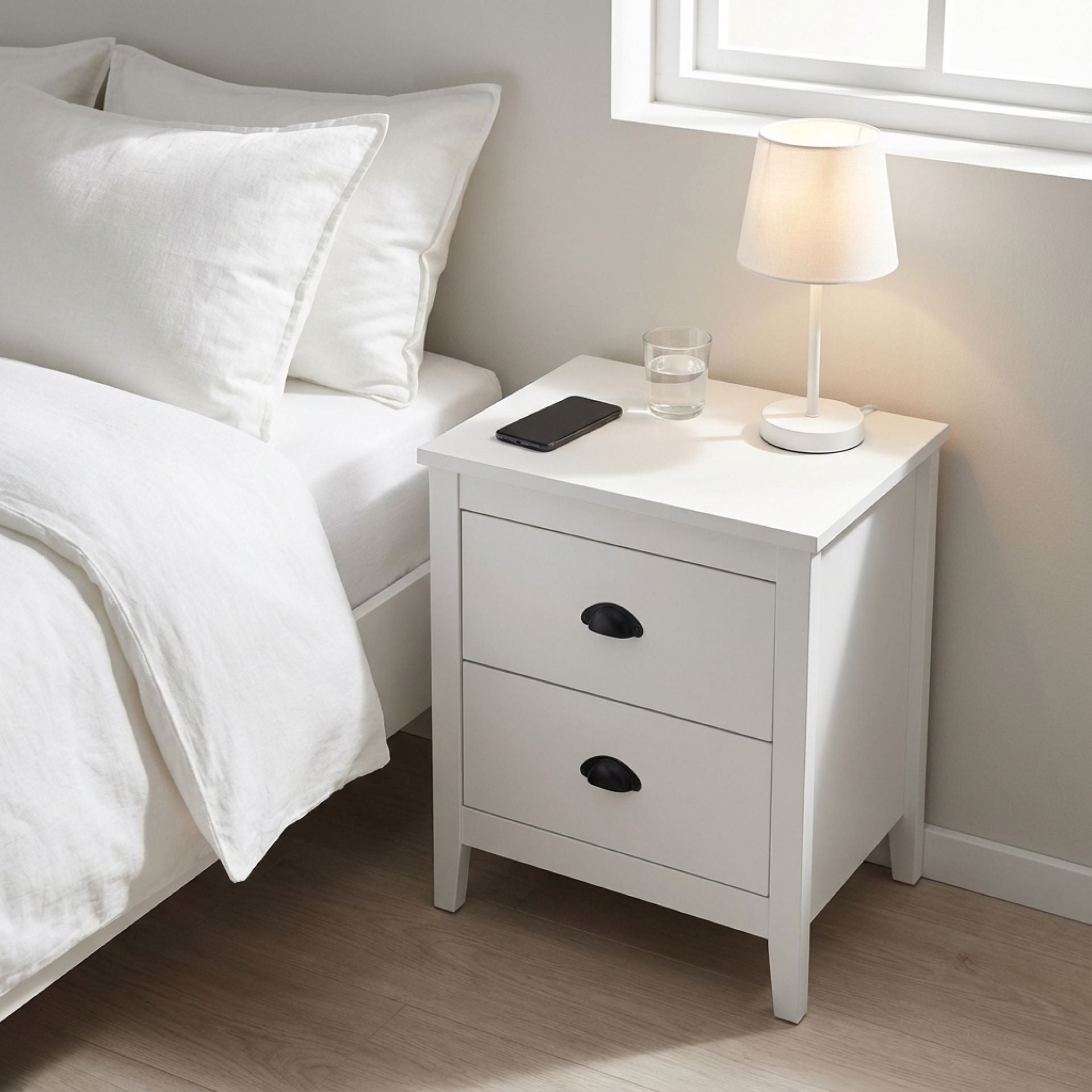 Congo Bedside Table with 2 Drawers - White