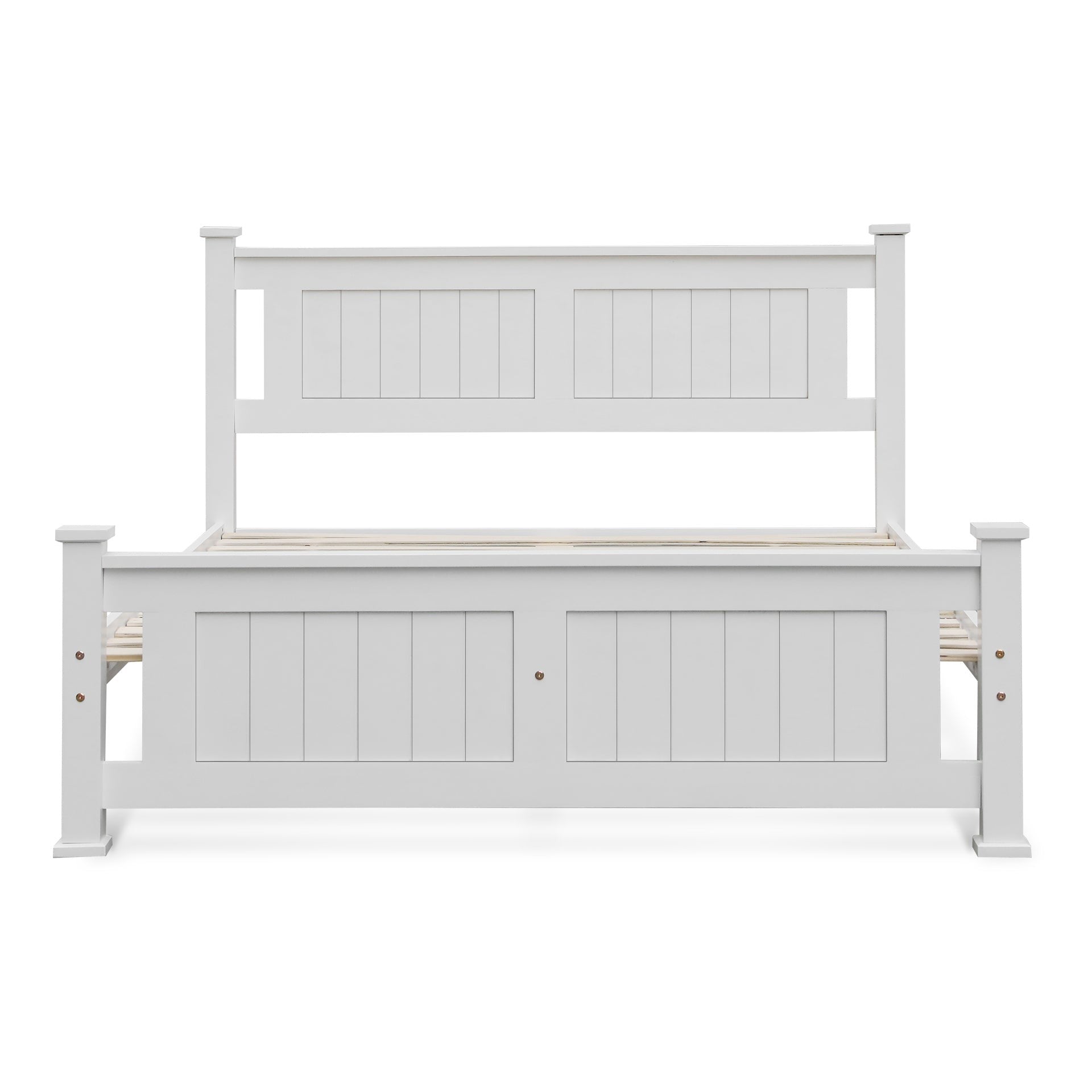 Made from premium pine wood with a matte finish, its headboard and footboard boast hollow-style detailing for a breezy aesthetic. Built with resilience, this bed's sturdy frame and legs are designed to support various mattress types, while the provided slat kit ensures stability. Additionally, utilize the under-bed space for organized storage, maximizing room utility.