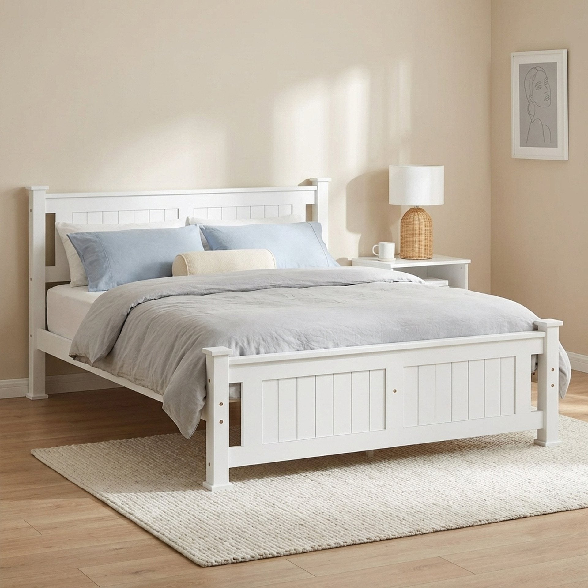 1 x DAVRAZ Queen Wooden Bed Frame WHITE