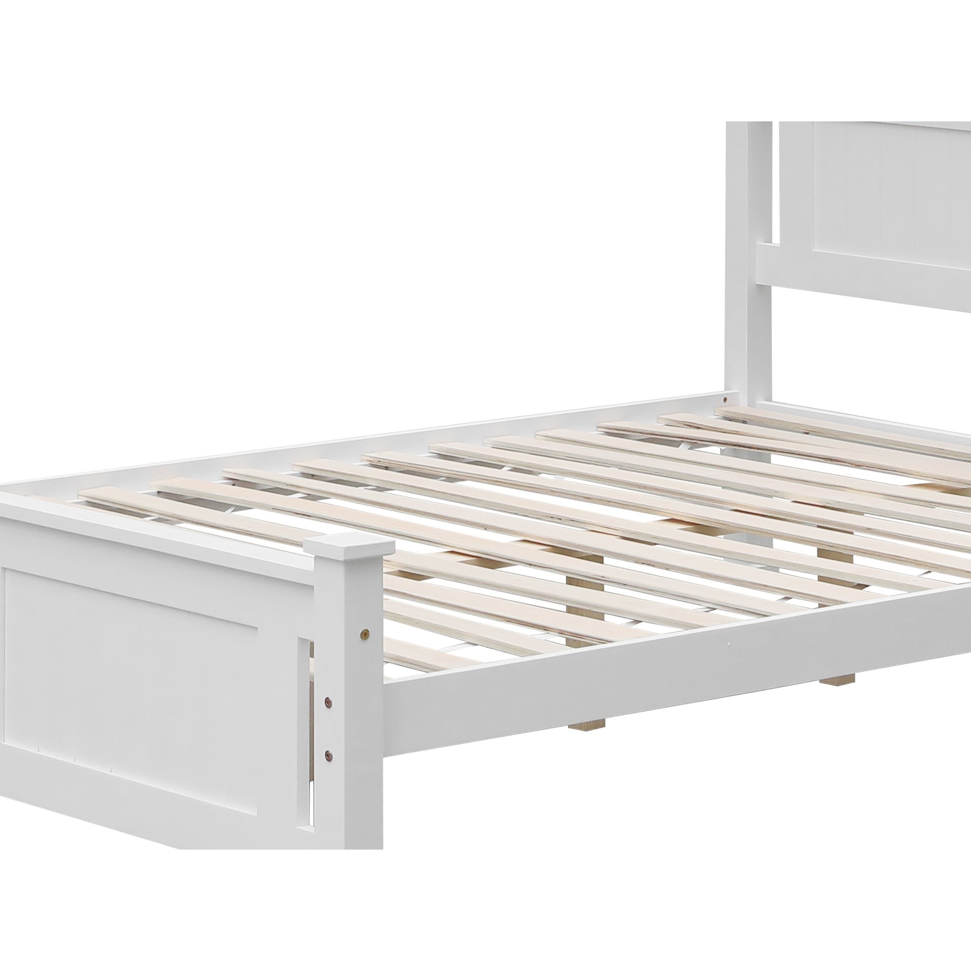 Made from premium pine wood with a matte finish, its headboard and footboard boast hollow-style detailing for a breezy aesthetic. Built with resilience, this bed's sturdy frame and legs are designed to support various mattress types, while the provided slat kit ensures stability. Additionally, utilize the under-bed space for organized storage, maximizing room utility.