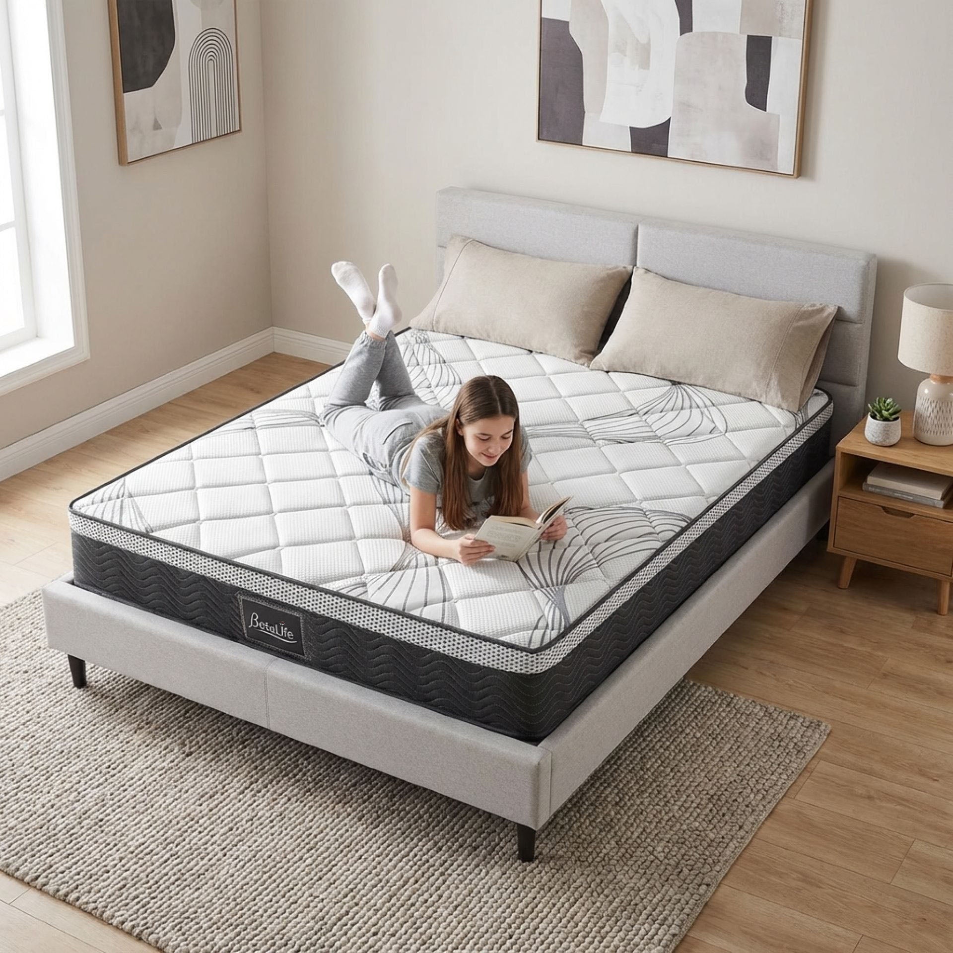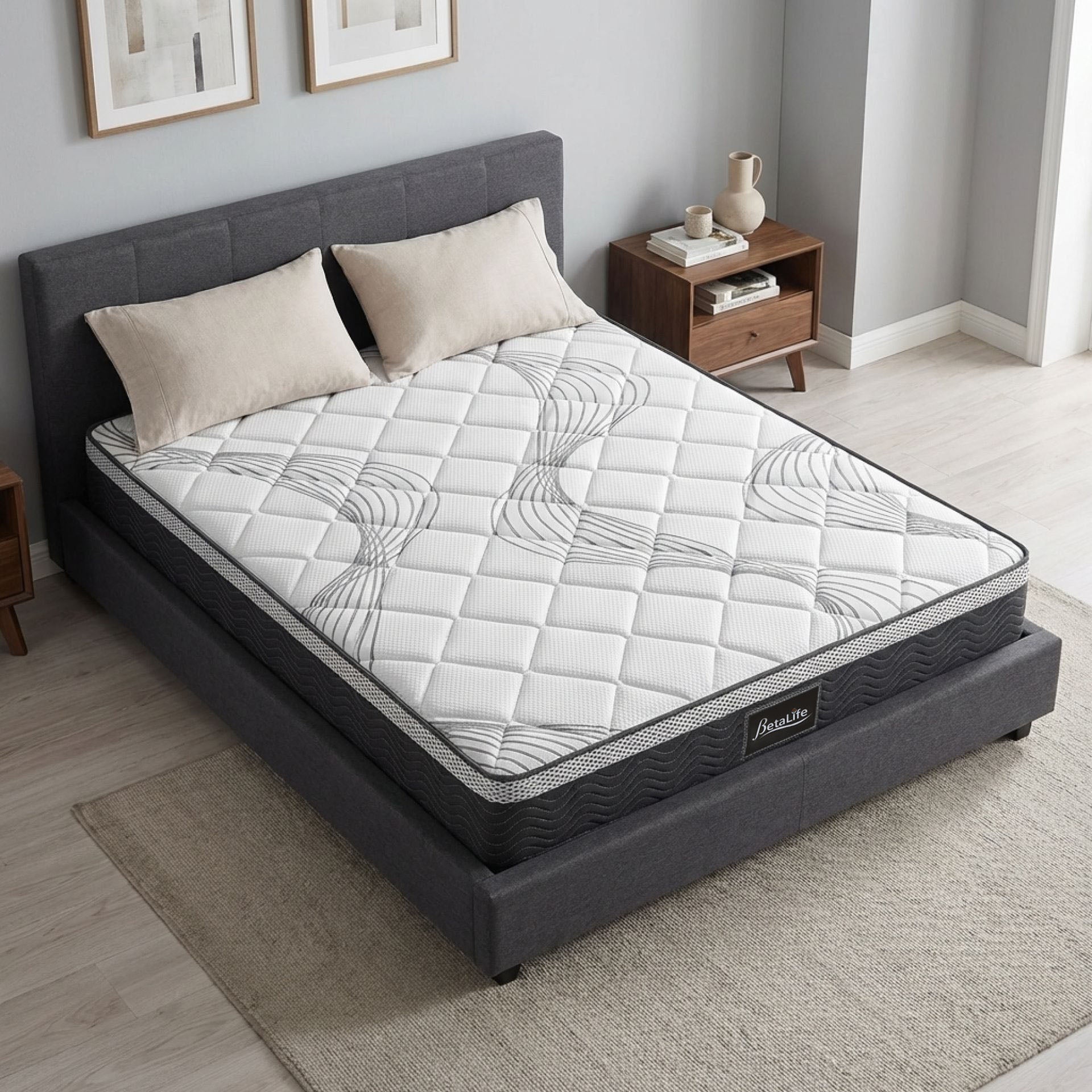BetaLife Deluxe Plus 7-Zone Support Mattress, designed with a 22cm pocket spring construction for ultimate comfort. Individual pockets relieve pressure, conform to your body, and reduce muscle and body aches, delivering personalized comfort and an undisturbed night's sleep.