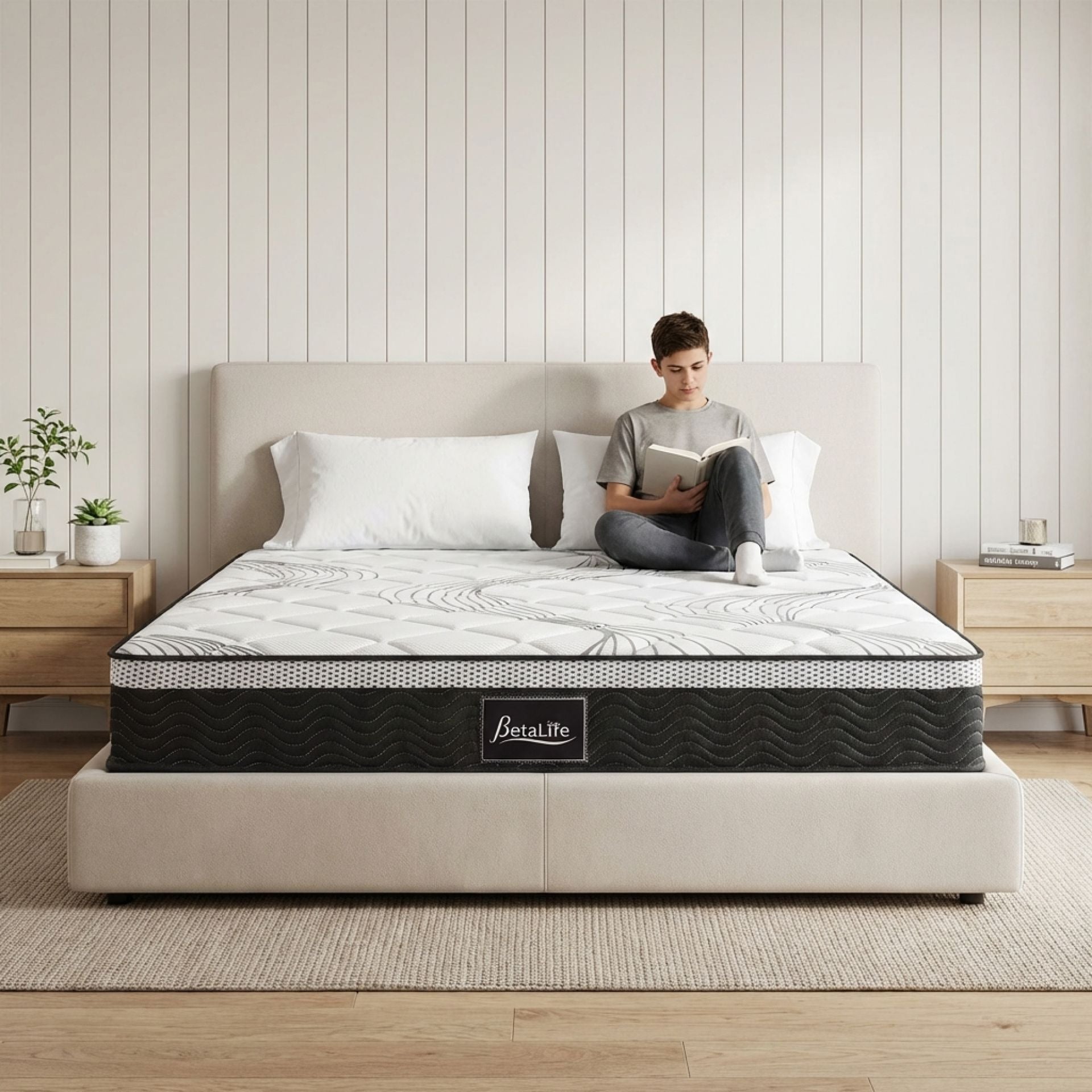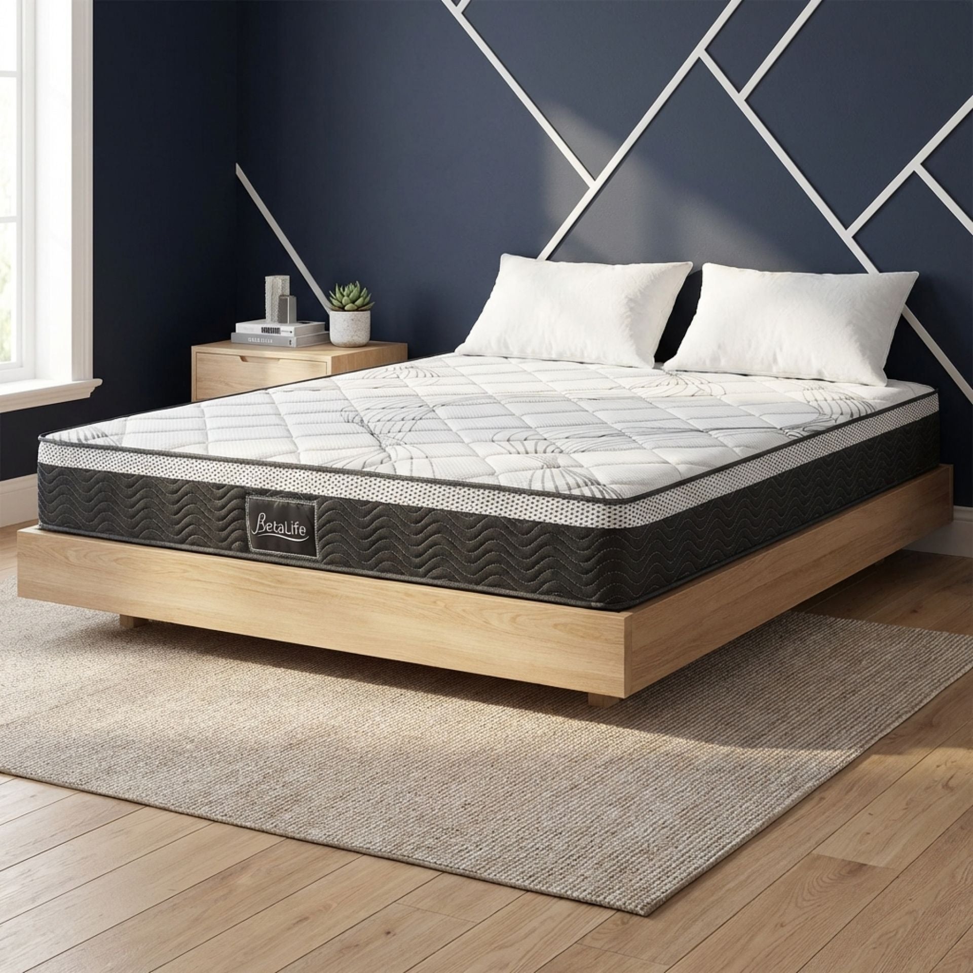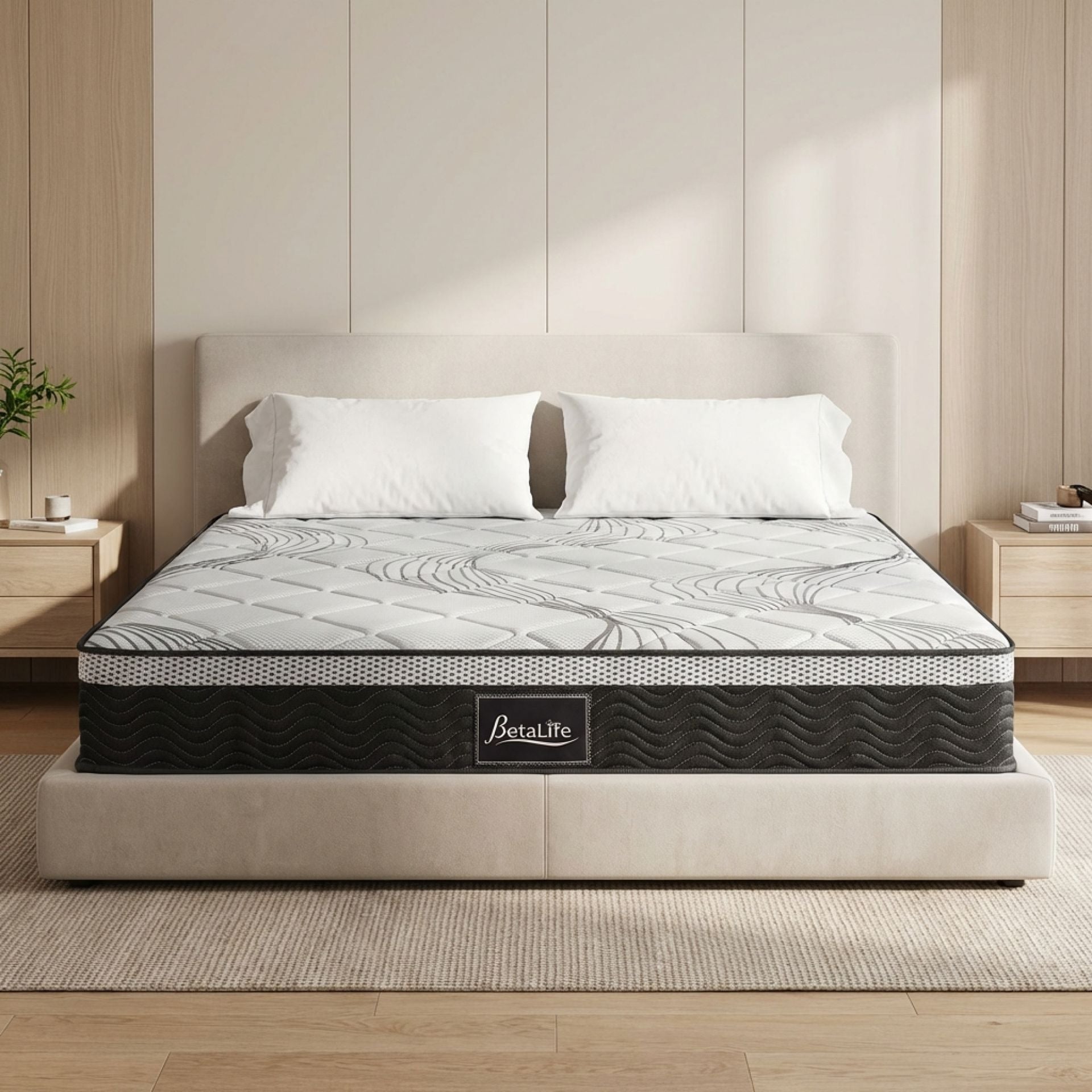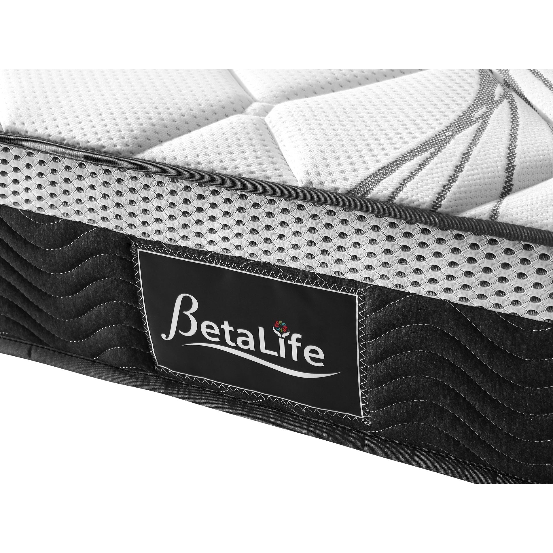 BetaLife Deluxe Plus 7-Zone Support Mattress, designed with a 22cm pocket spring construction for ultimate comfort. Individual pockets relieve pressure, conform to your body, and reduce muscle and body aches, delivering personalized comfort and an undisturbed night's sleep.