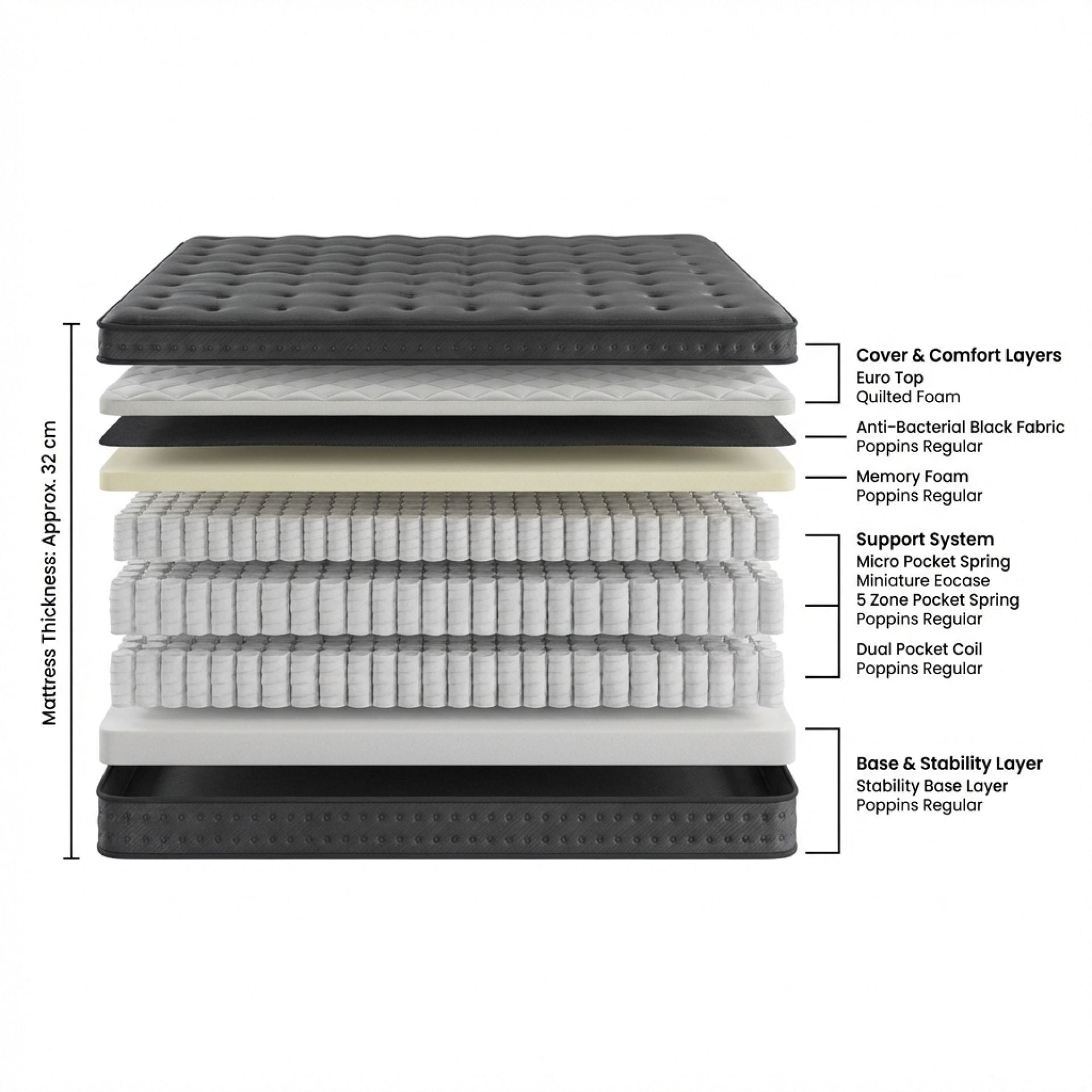 - Material: Anti-bacterial Black Fabric / Memory Foam / High Density Foam / Micro Pocket Spring / Pocket Spring