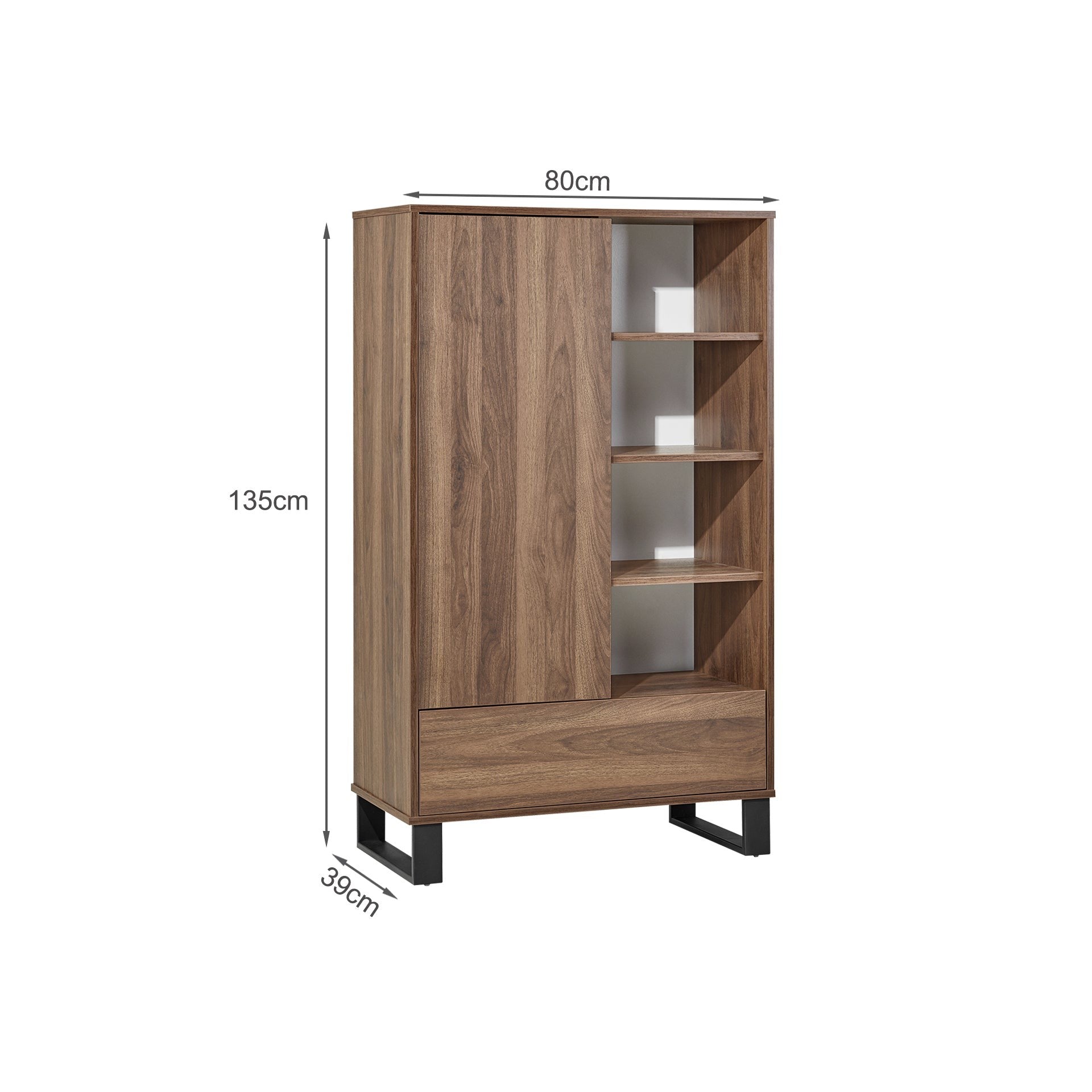 This FROHNA Cabinet is one of our FROHNA range products with a simple and modern style look makes a great décor for home. Crafted from quality wood with black metal accents, this bookshelf is sturdy and durable for years of service; the 4 open shelves offers an ample space to display the serve ware for family meals or dinner parties; while the flat table top provide a space to display photo albums and plants; come with 1 independent cabinet with 4 shelves for storage plates, cutlery and napery and keep your rooms tidy.