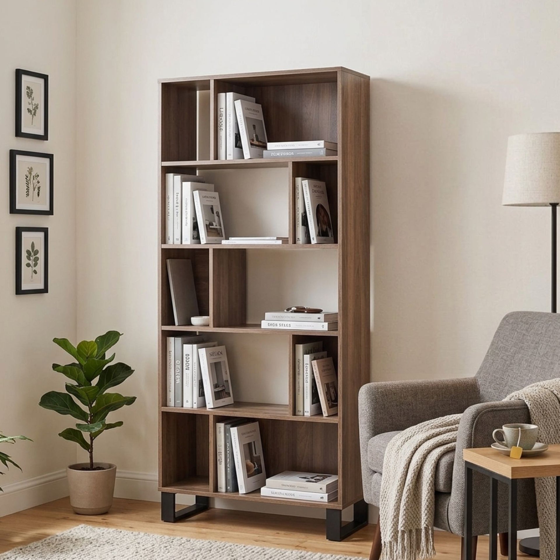 1 x FROHNA Bookshelf Display Shelf Bookcase Stand Rack - Walnut