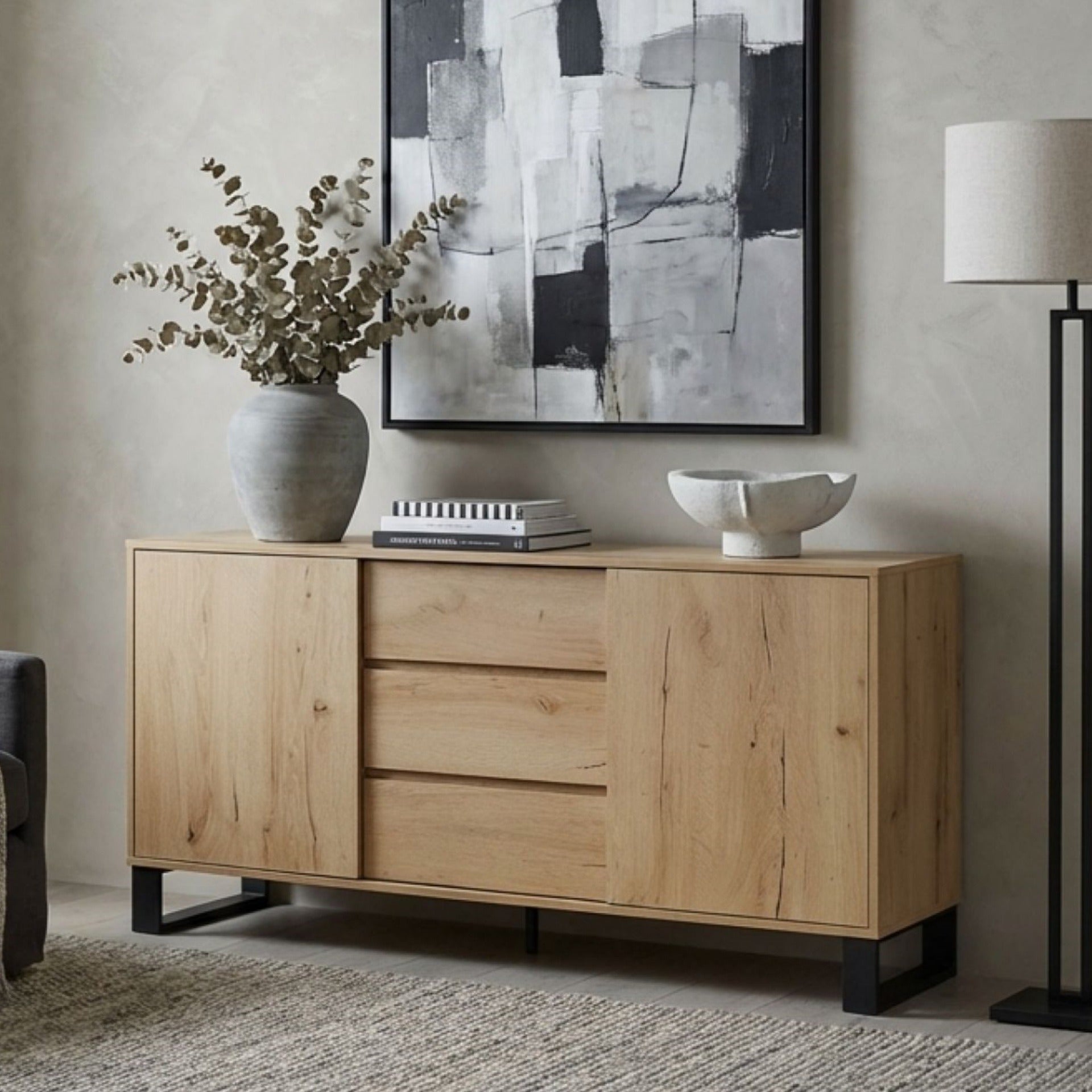 1 x FROHNA Sideboard Buffet Table with 3 Drawers - OAK