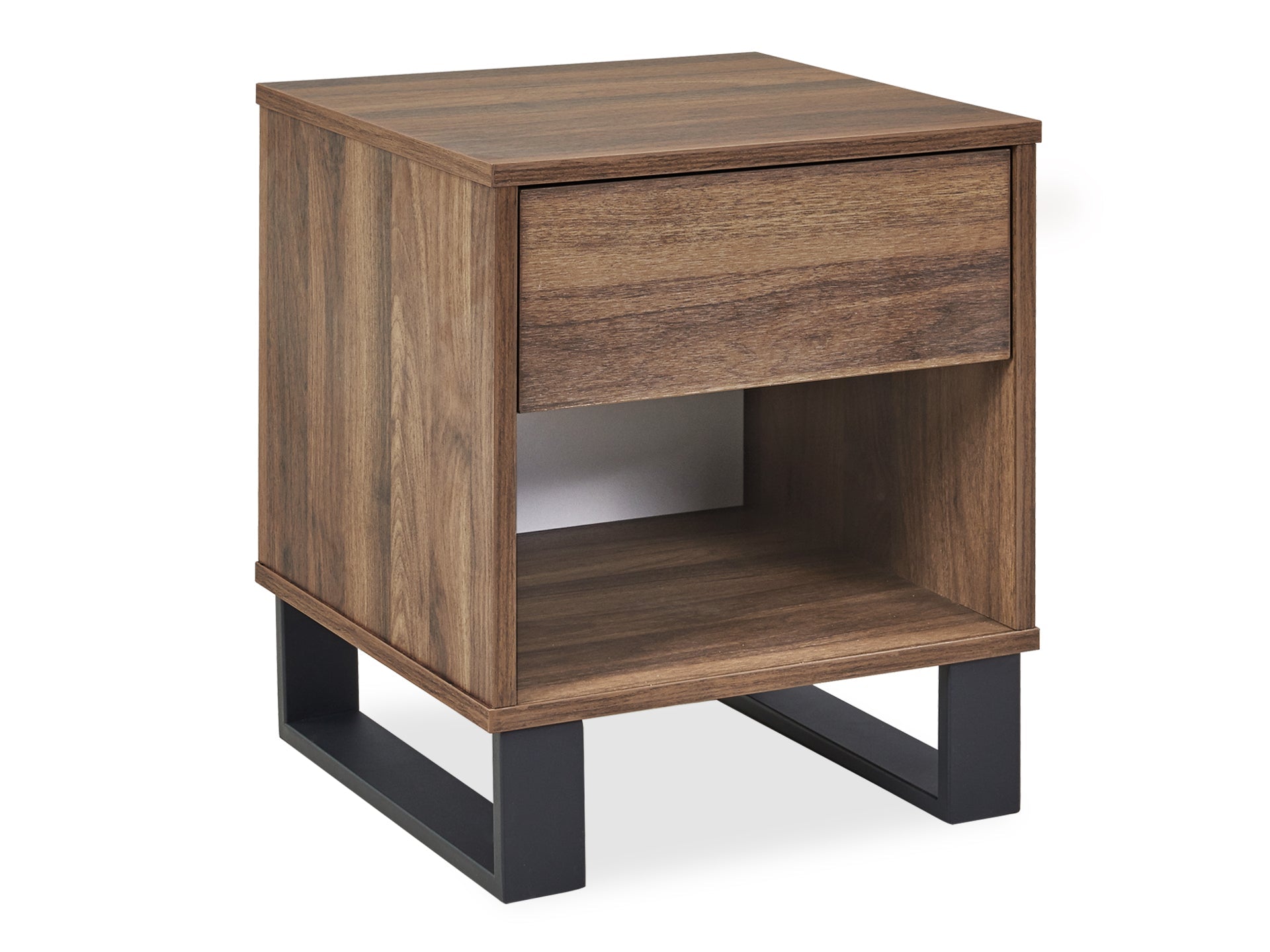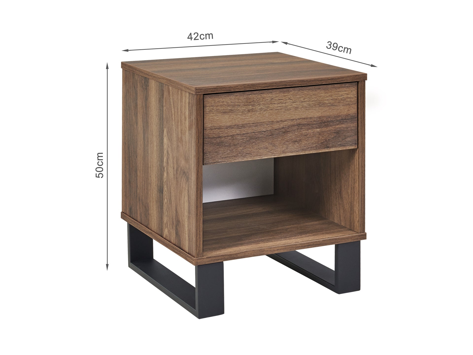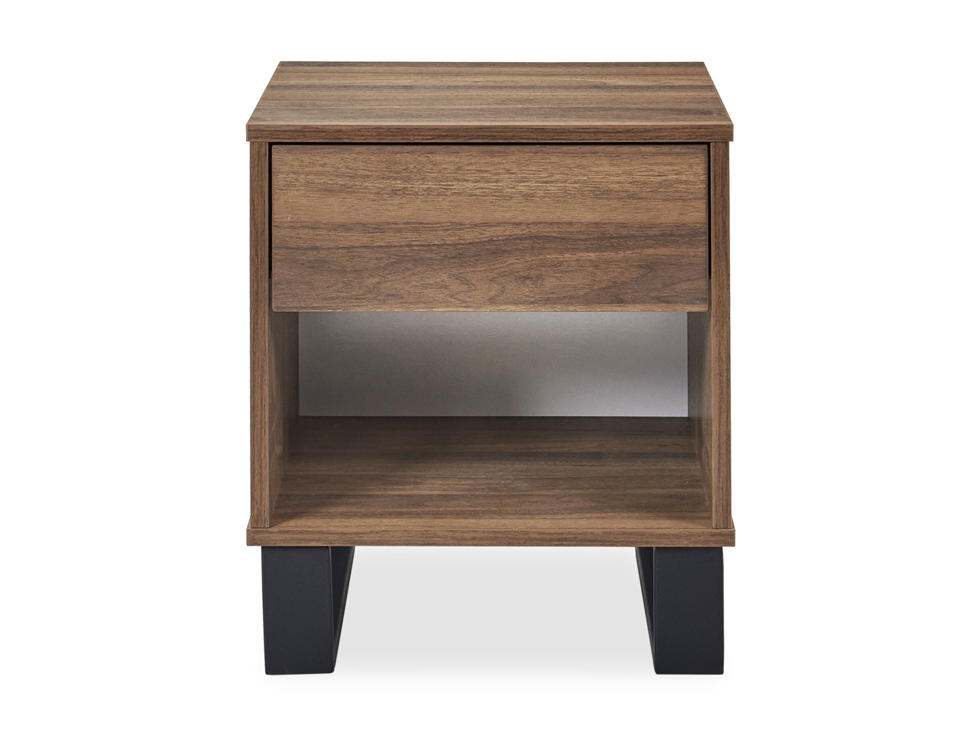This FROHNA Bedside Table is one of our FROHNA range products with a simple and modern style look makes a great décor for home. Crafted from quality wood with black metal accents, this bedside table is sturdy and durable for years of service; the drawer provide ample space to stow away your phones, books, photo frames etc. and keep everything hidden; also come with open shelf can be used to display some attractive art pieces in the bedroom and the large flat top offers great space to perch your lamps, alarm clocks and other accessories.