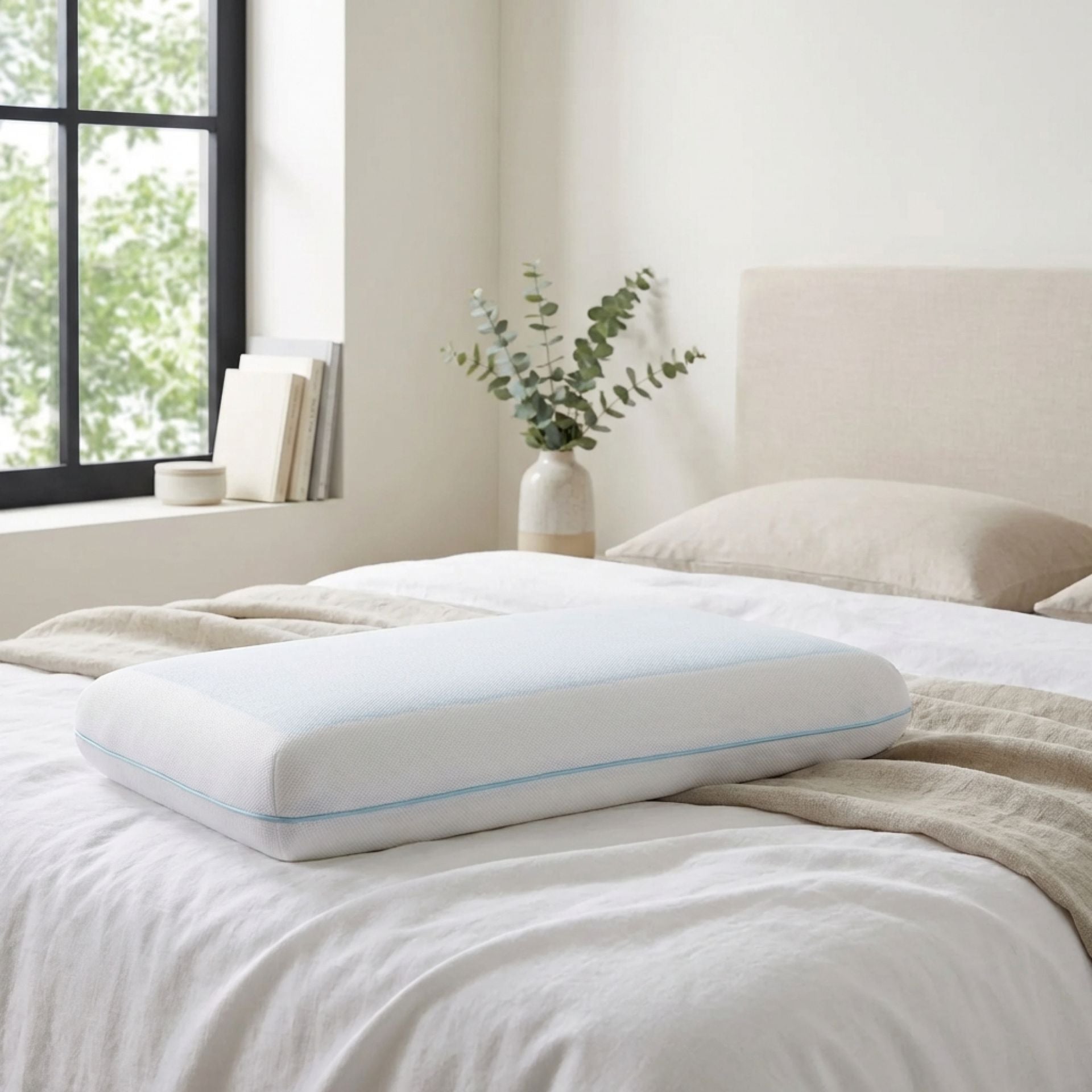 Discover tranquillity and comfort with our specifically formulated Gel-Infused Memory Foam Pillow. Designed as a non-contoured, traditional flat pillow, it's perfect for those who grapple with hot flashes, night sweats or feel excessively warm while sleeping.