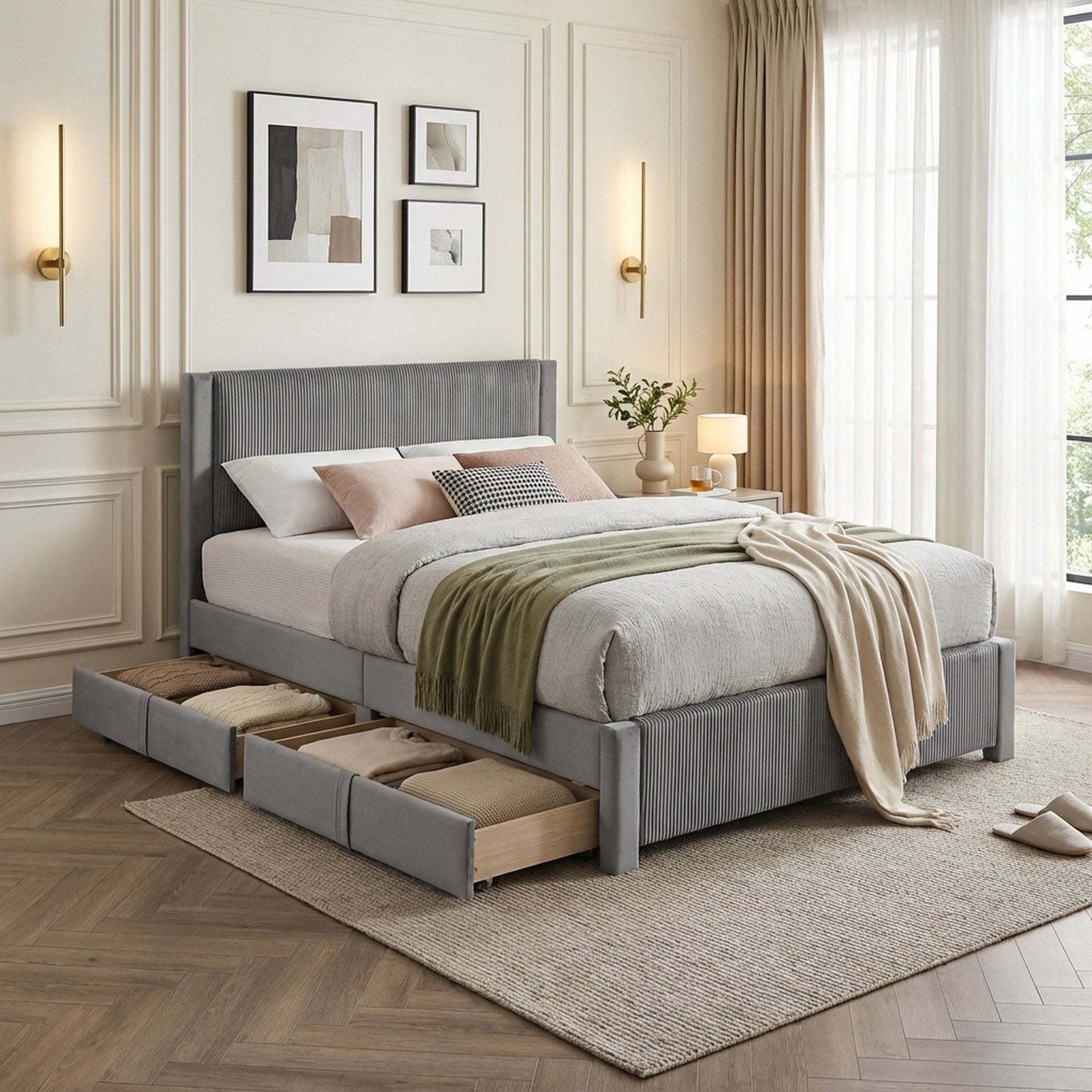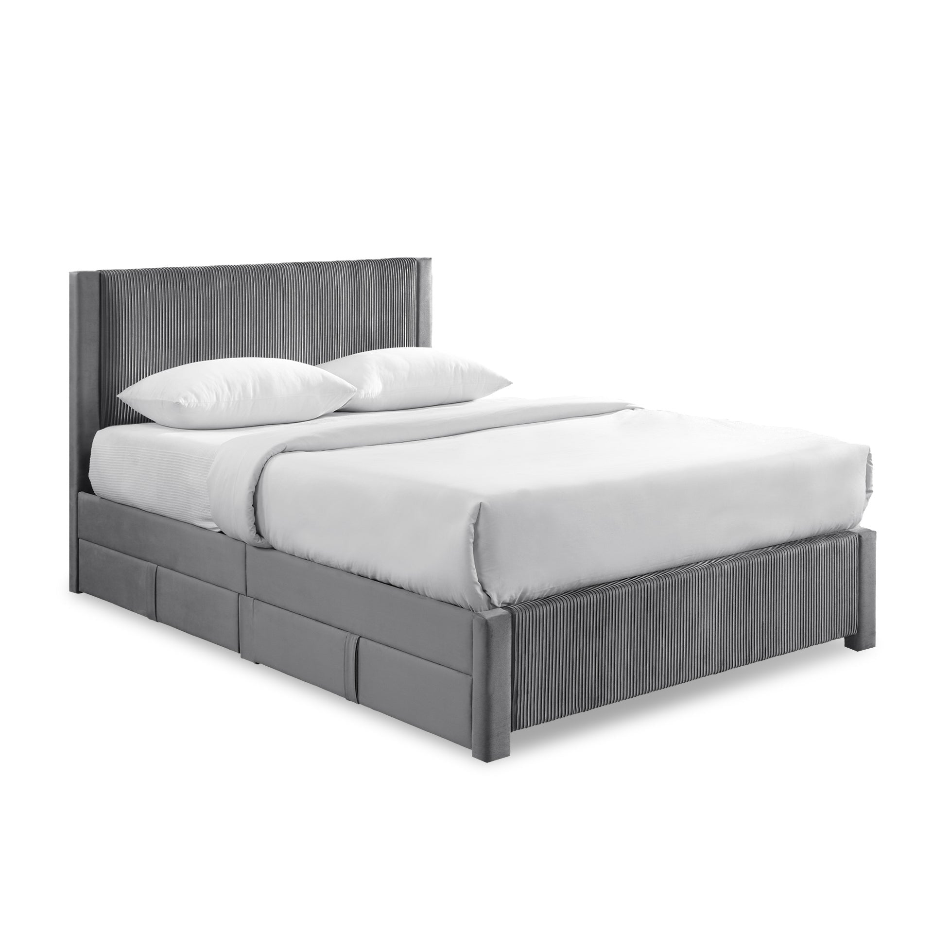 Gower Double Fabric Bed Frame with 4 Drawers - Grey