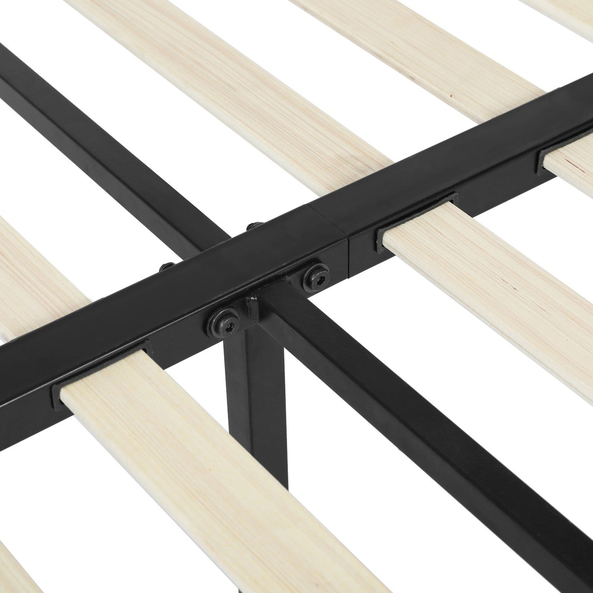 - Material: Iron tube frame / Wooden flat slats / Metal beams & struts