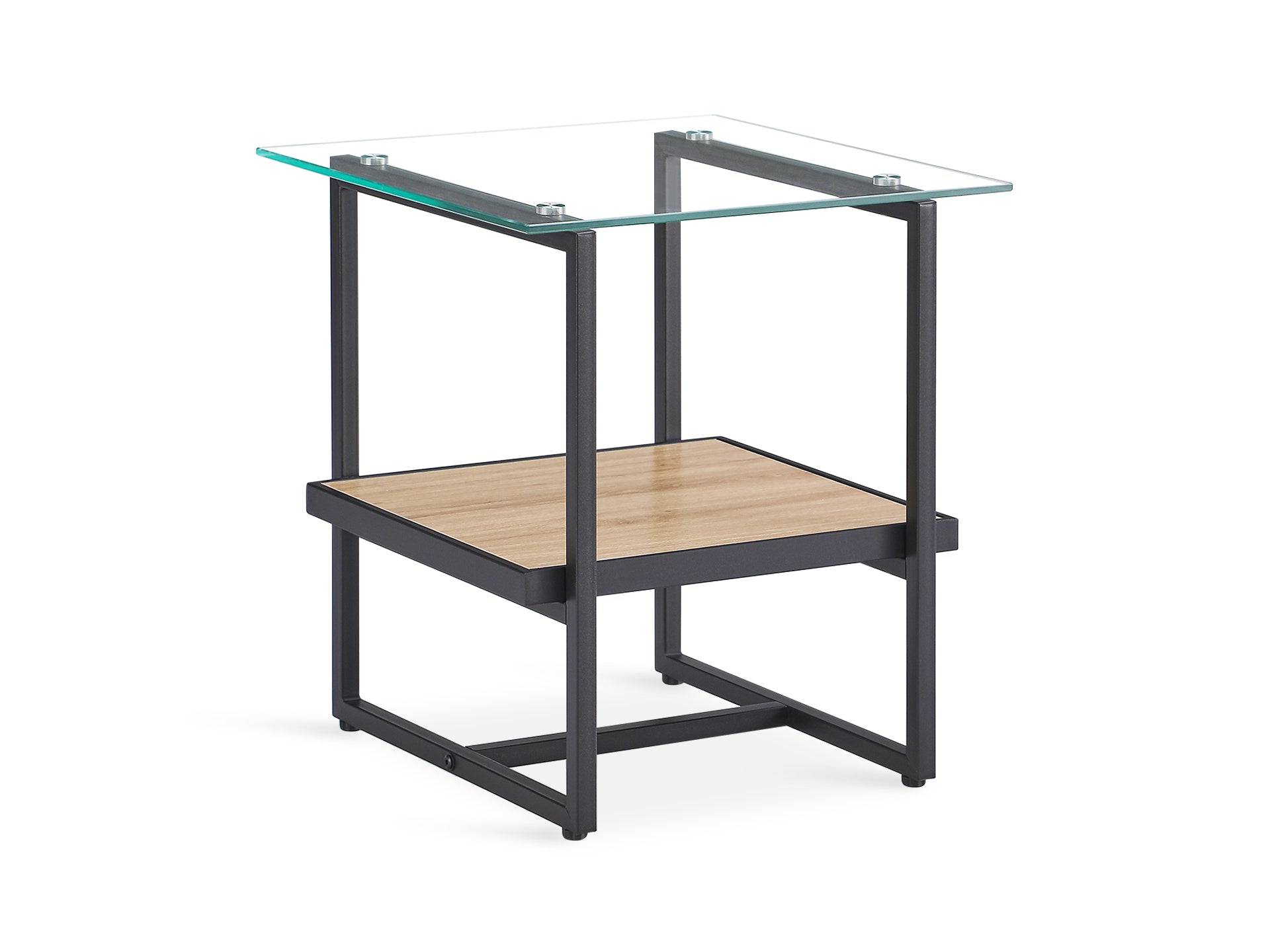 Hala Tempered Glass Top Side Table - Oak + Black
