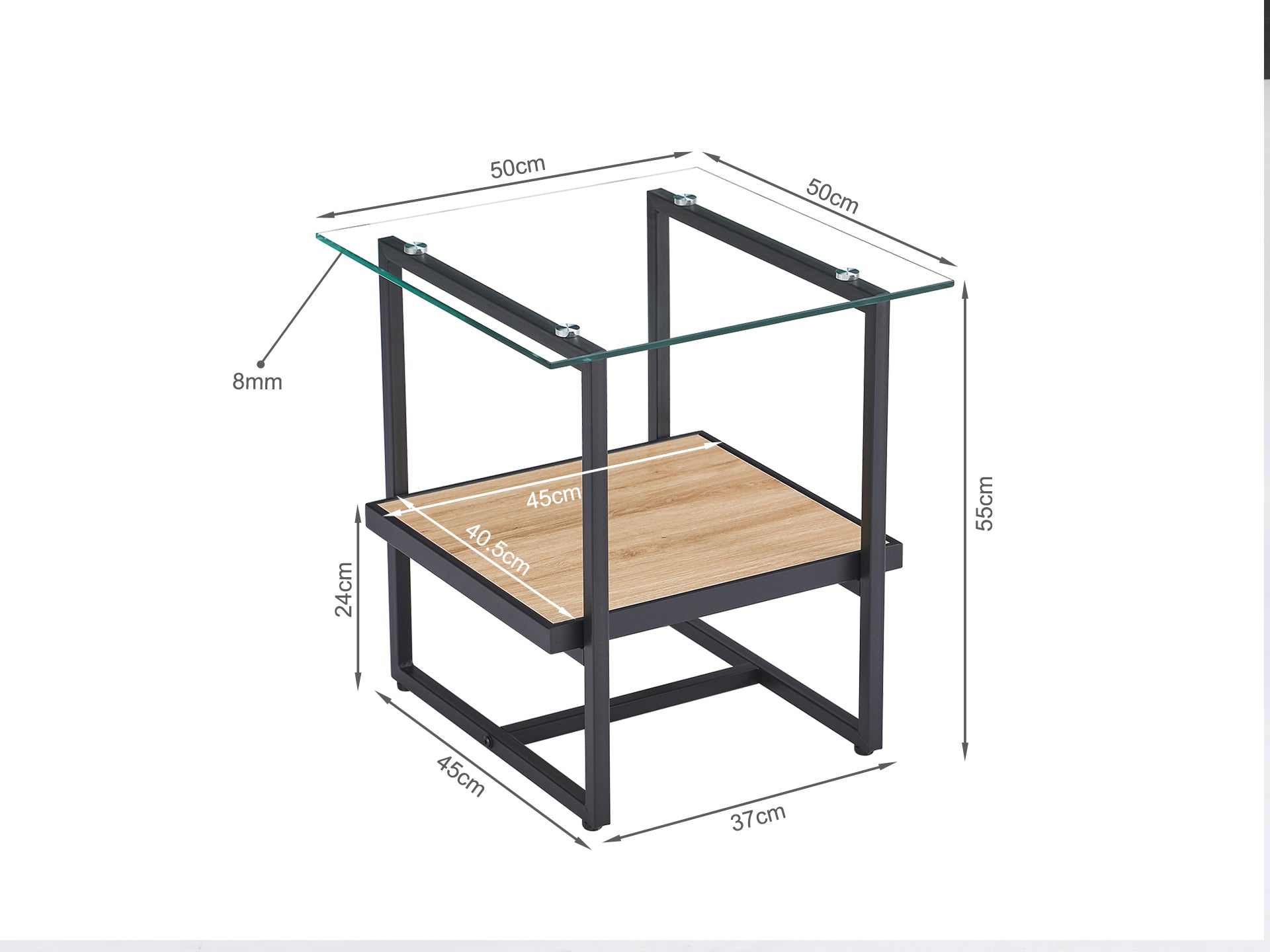 1 x Hala Tempered Glass Top Side Table - Oak + Black