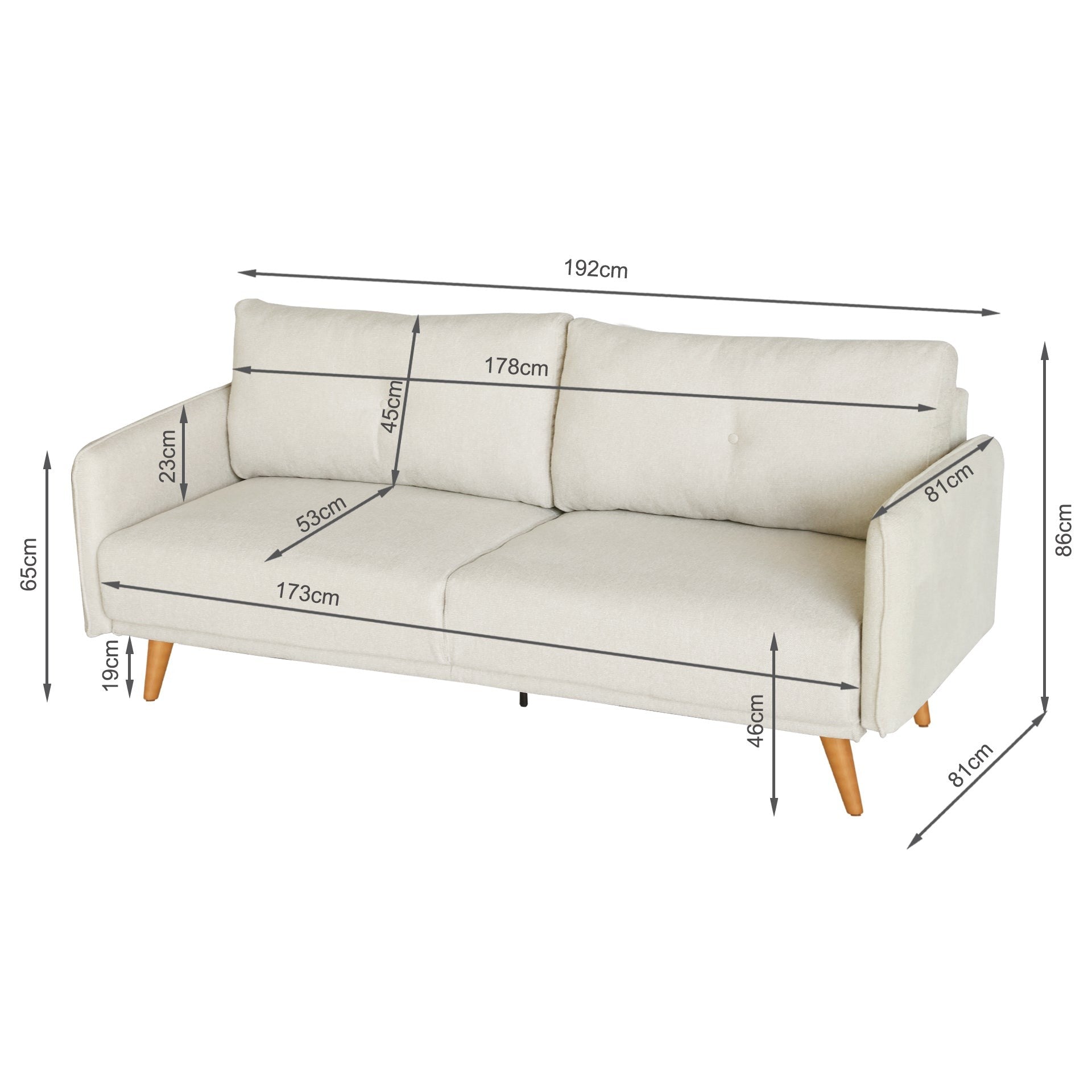 - Product Dimensions (L W H): 192cm x 81cm x 86cm