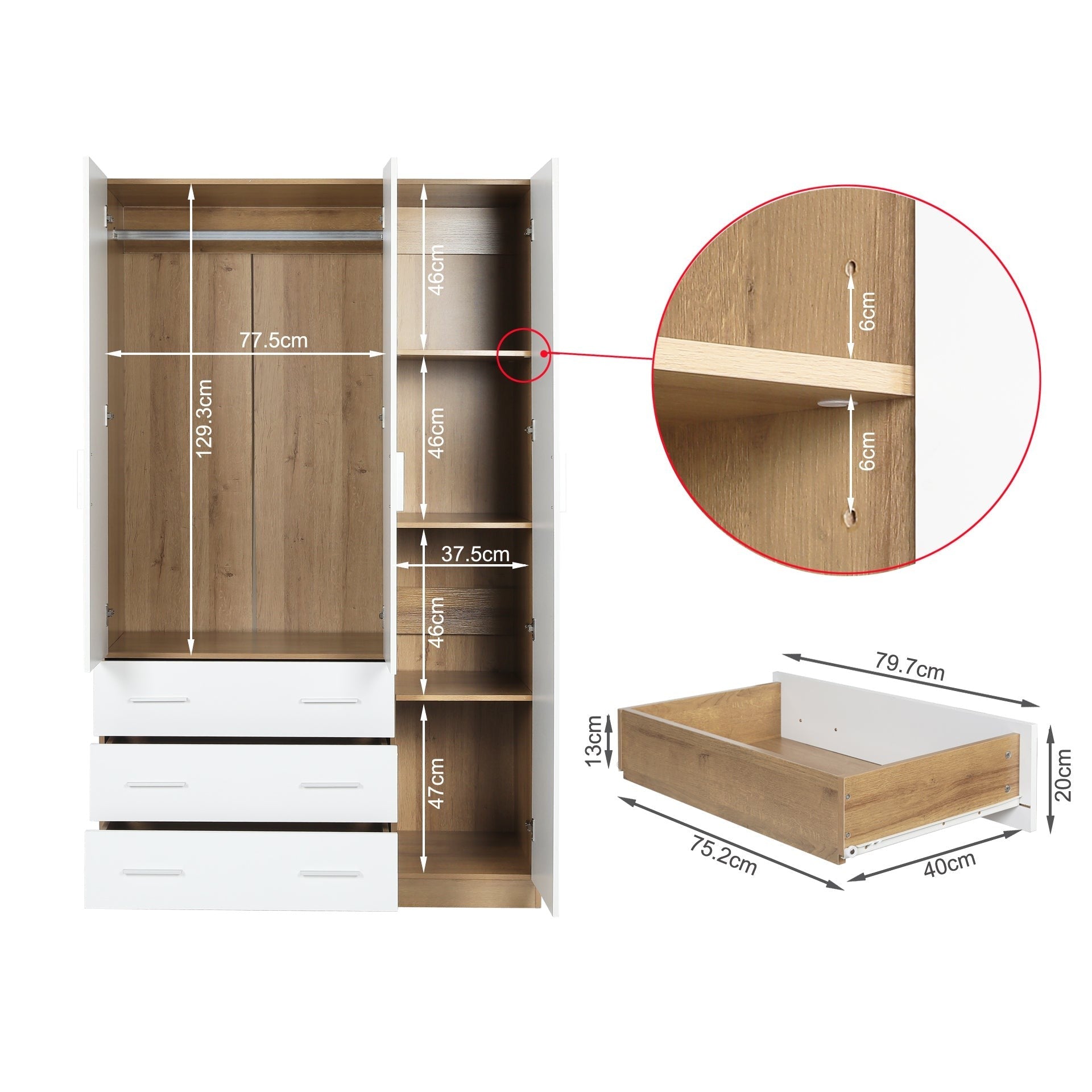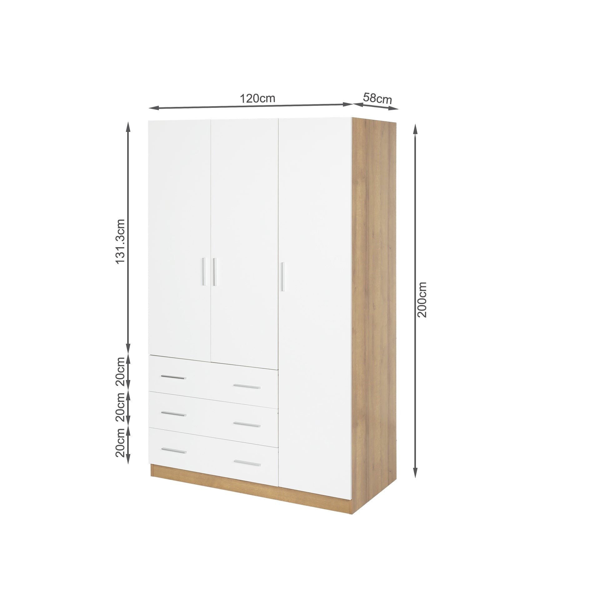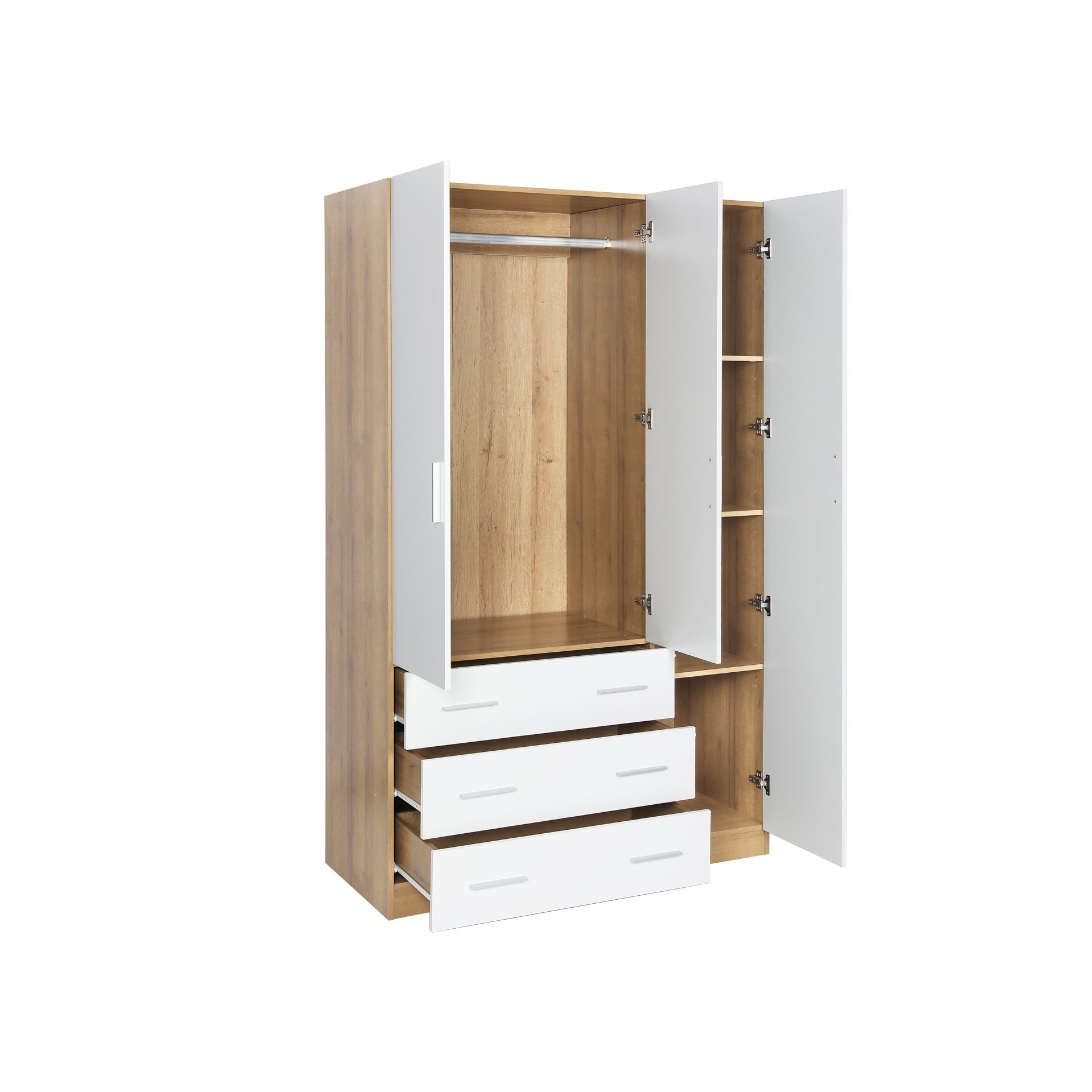 Harris 3 Door Wardrobe with 3 Drawers - Oak+White