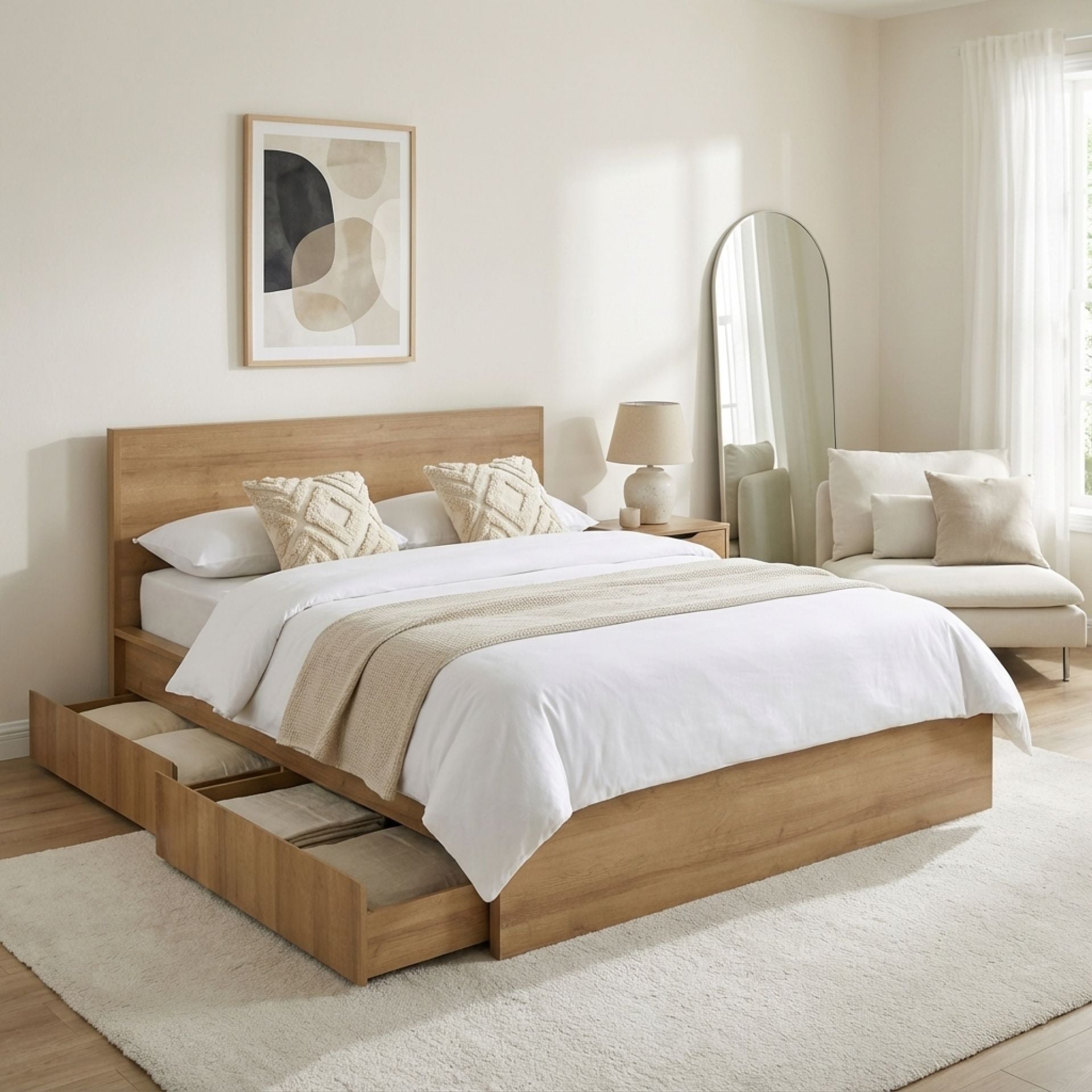 1 x HARRIS King Wooden Bed Frame with Storage - OAK
