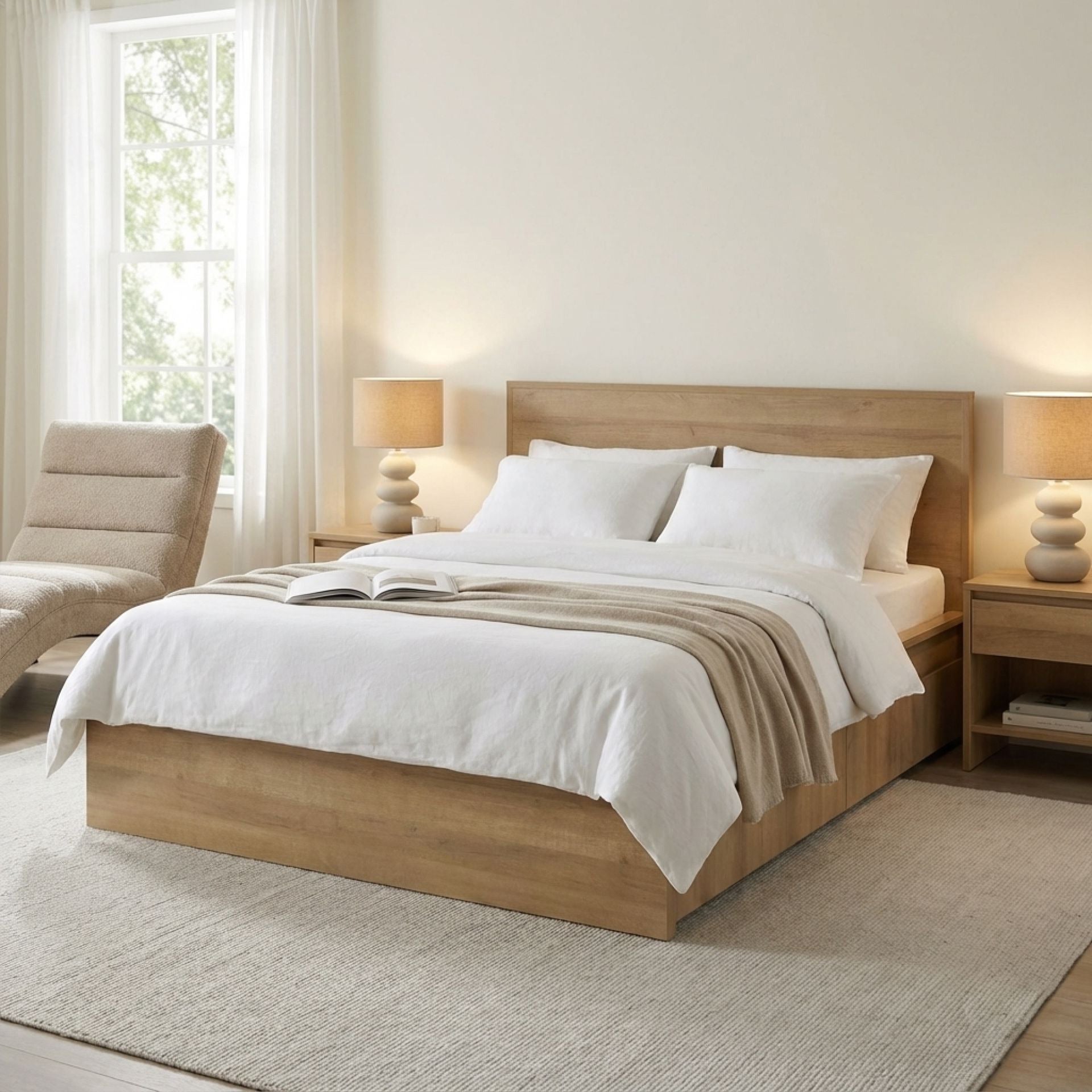 1 x HARRIS Queen Wooden Bed Frame with Storage - OAK
