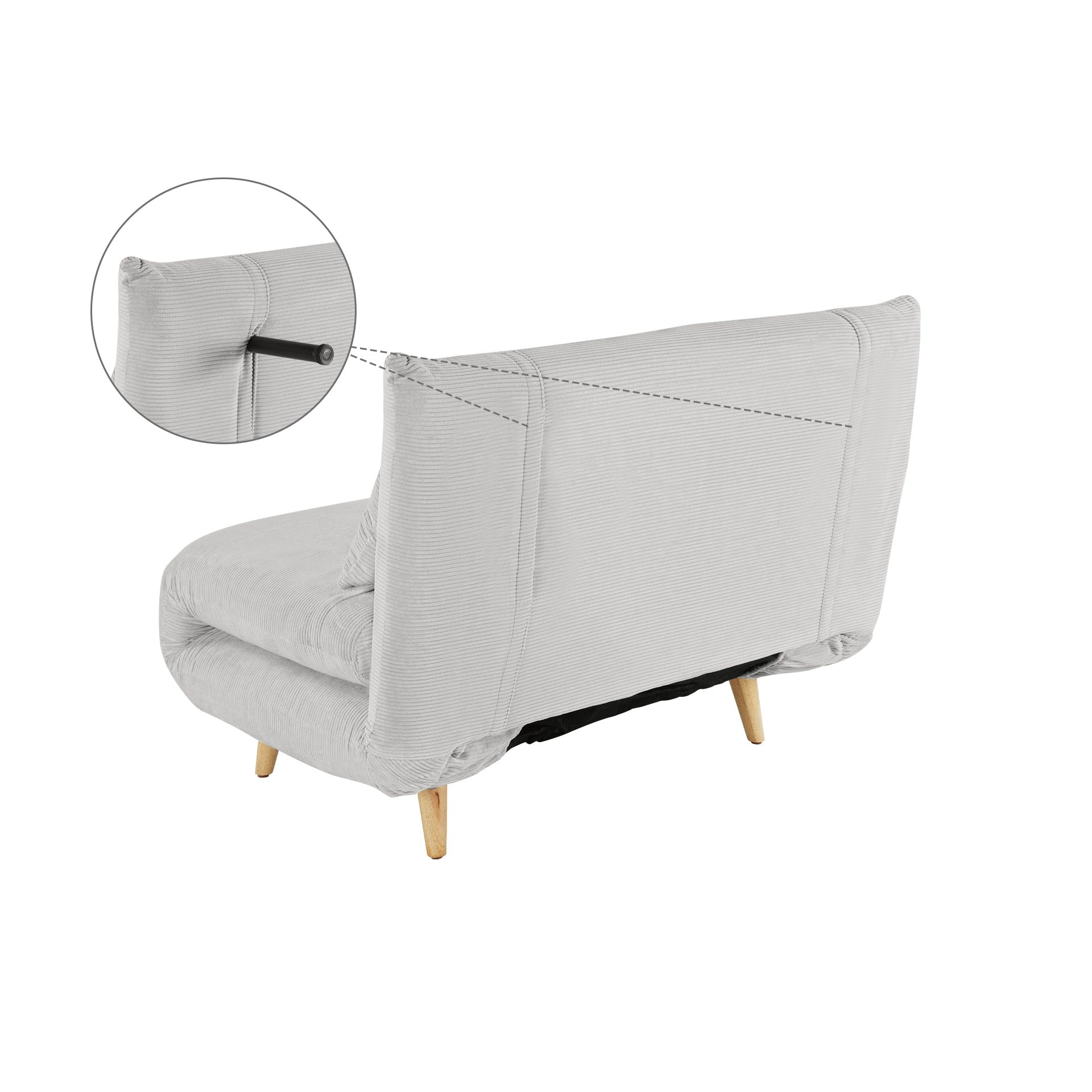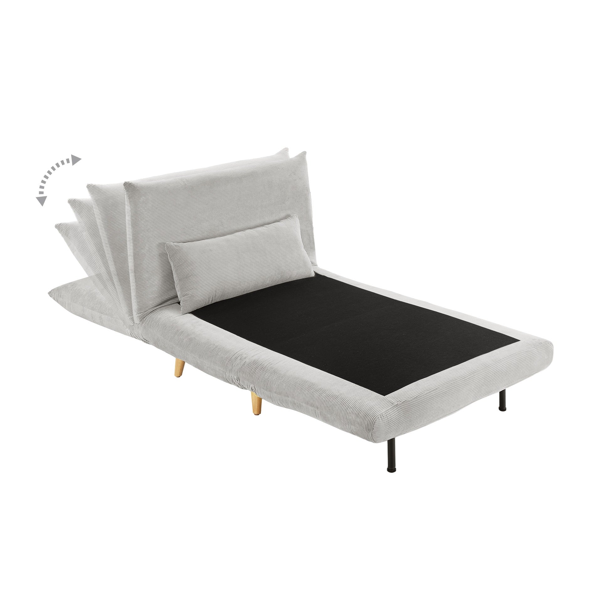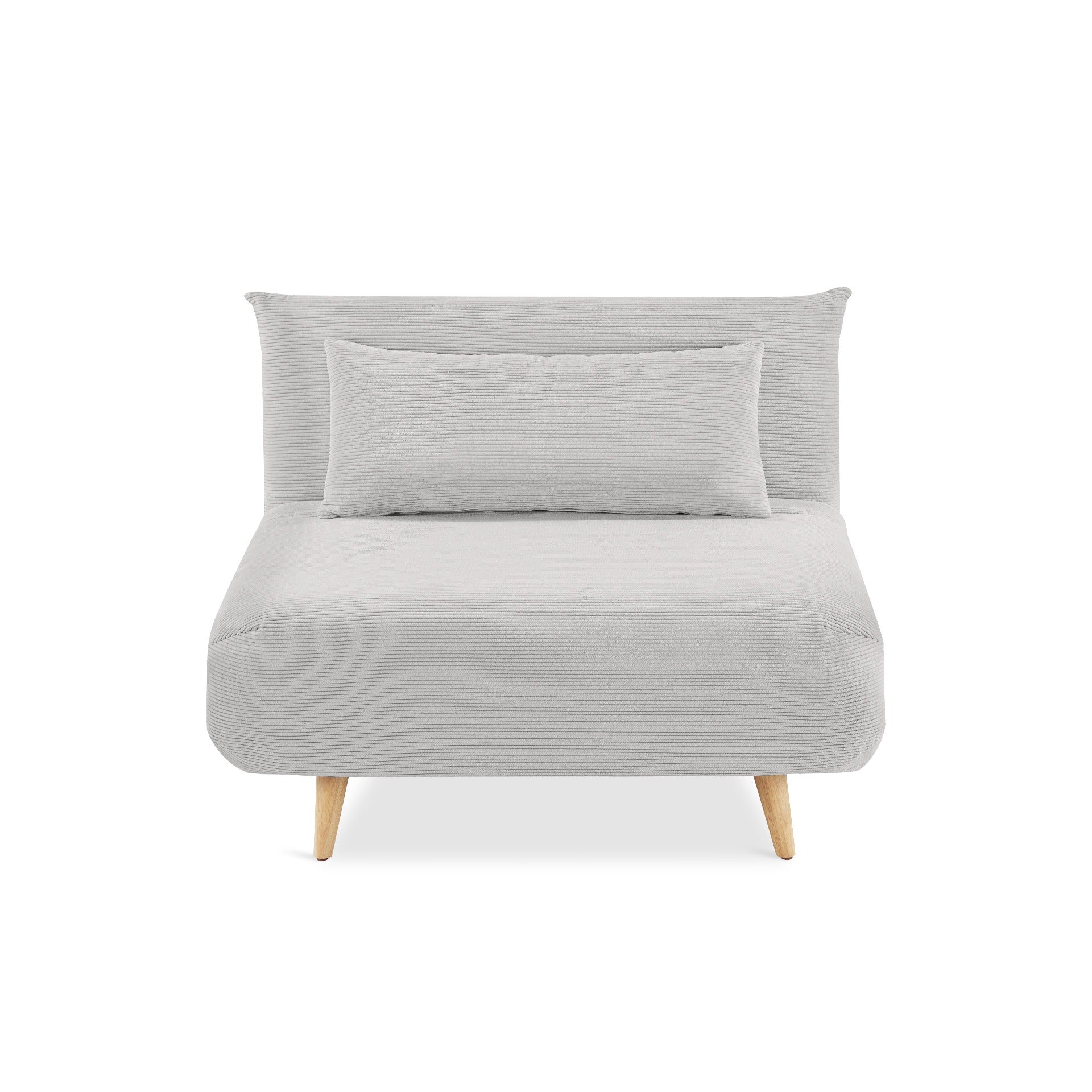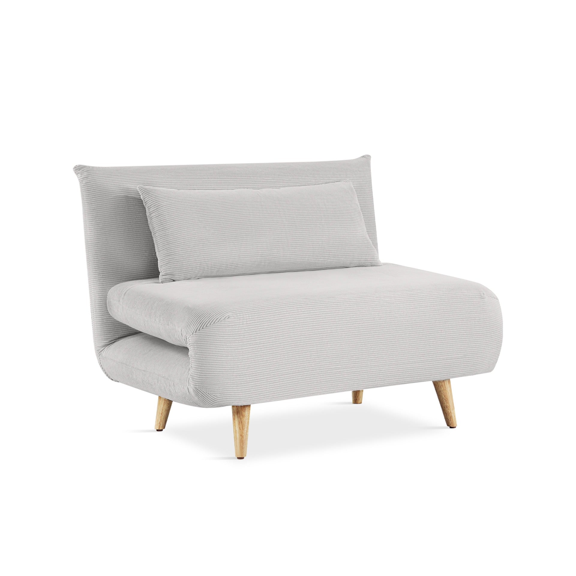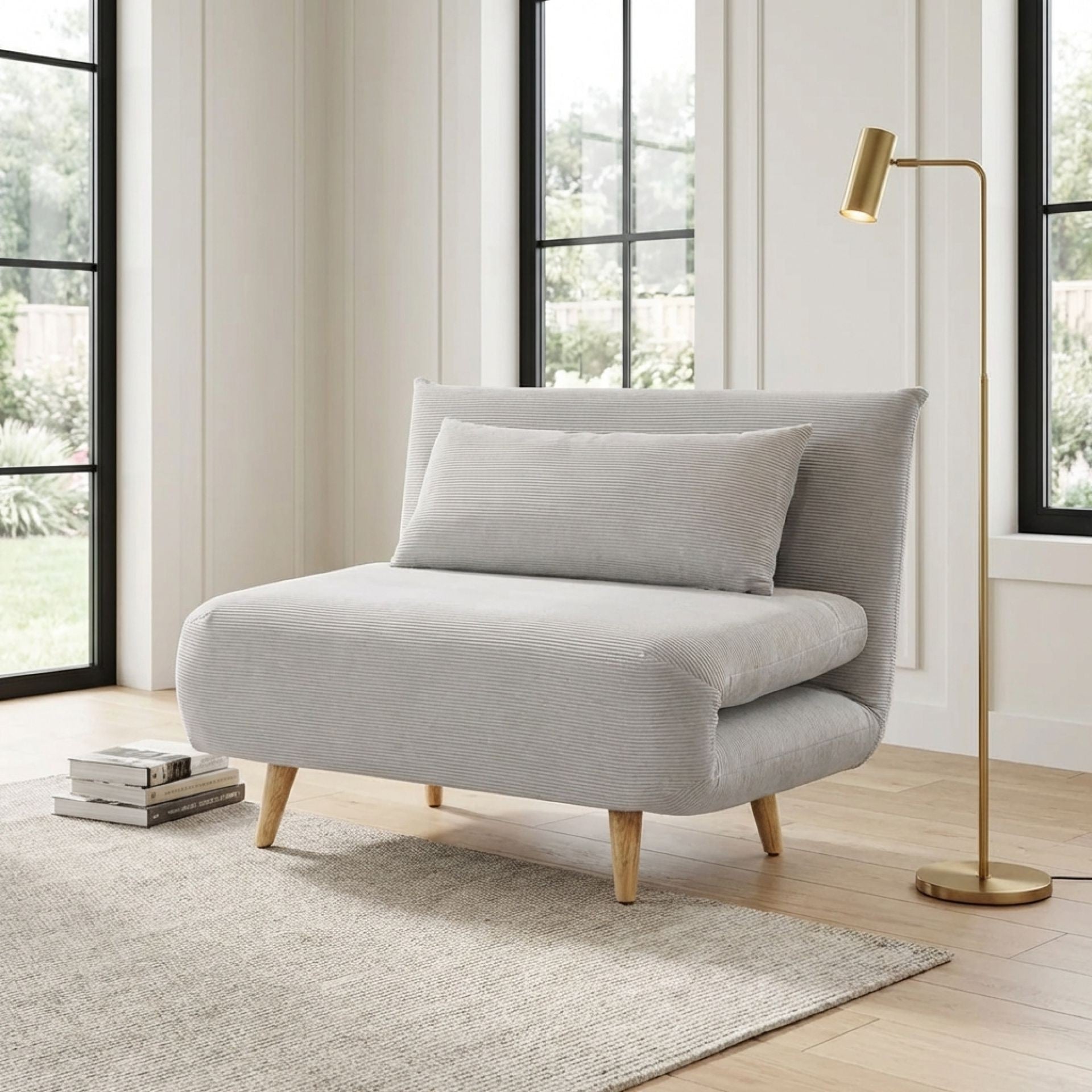 Designed for comfort and style, the Hastings 1 Seater Fold-Out Sofa Bed in grey offers a clean, minimalist look. With thick cushions, an adjustable backrest, and sturdy wood legs, it effortlessly shifts from seatering to sleeping.