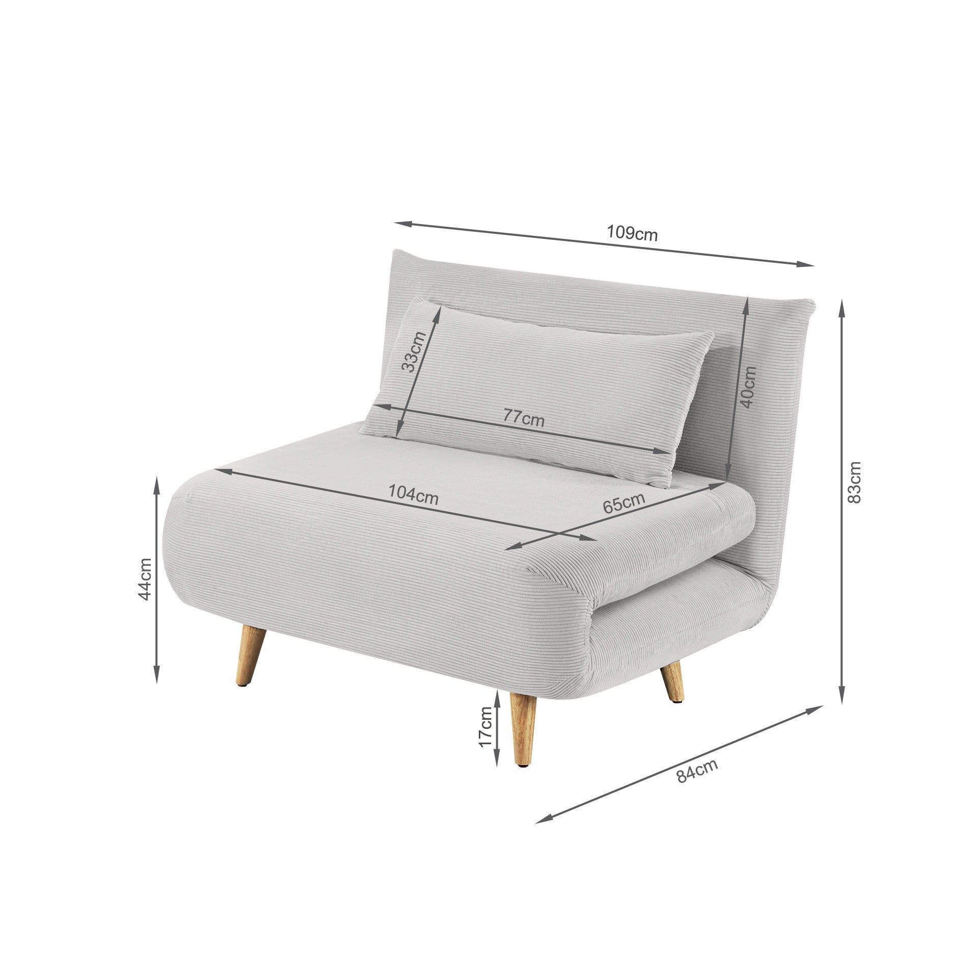 - Sofa Bed Dimensions (L x W x H): 109cm x 84cm x 83cm