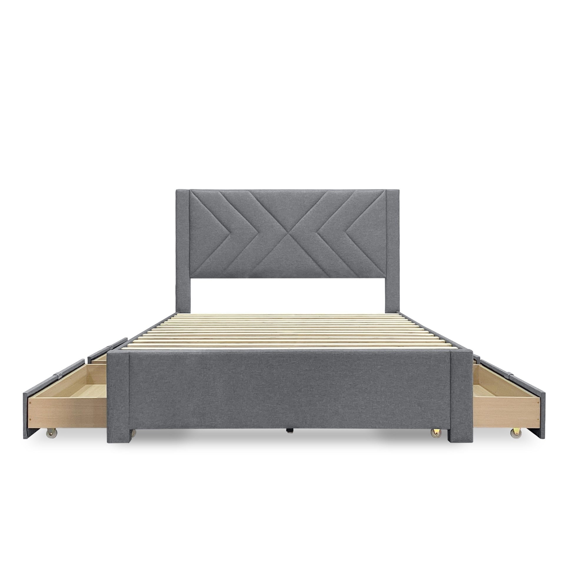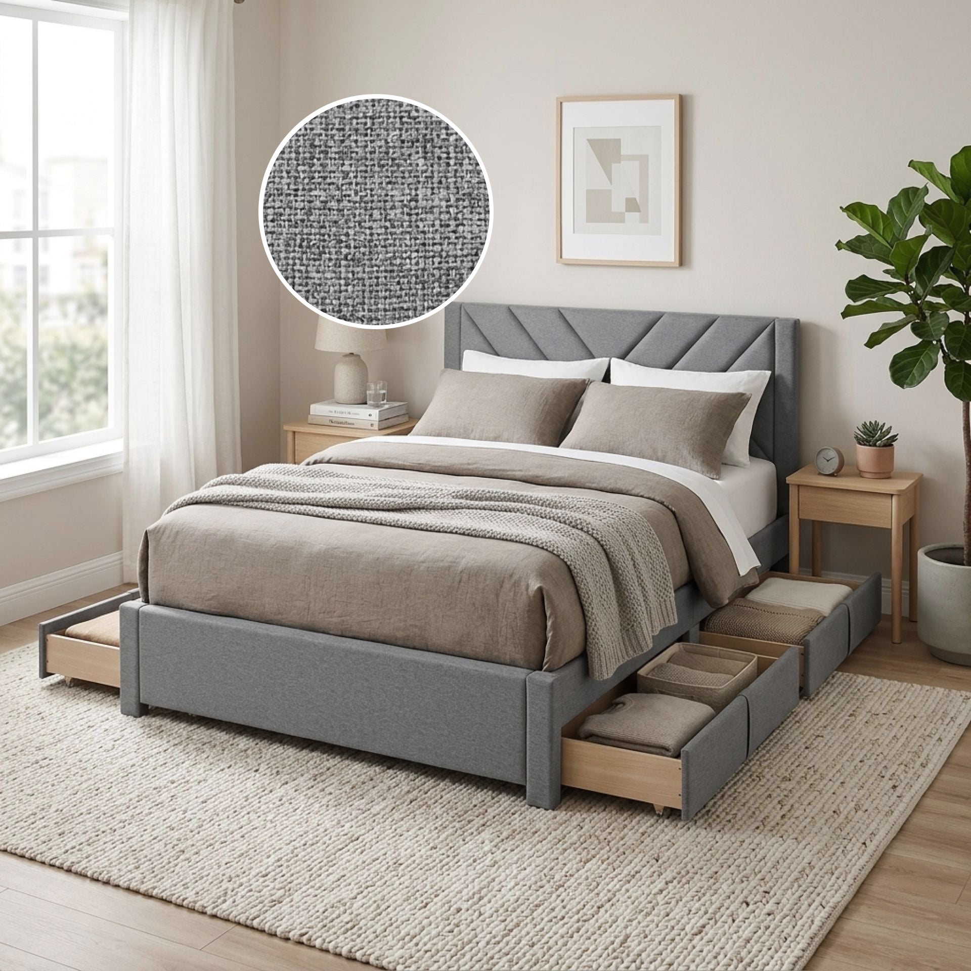 Haydon Double Fabric Bed Frame with 4 Drawers - Light Grey