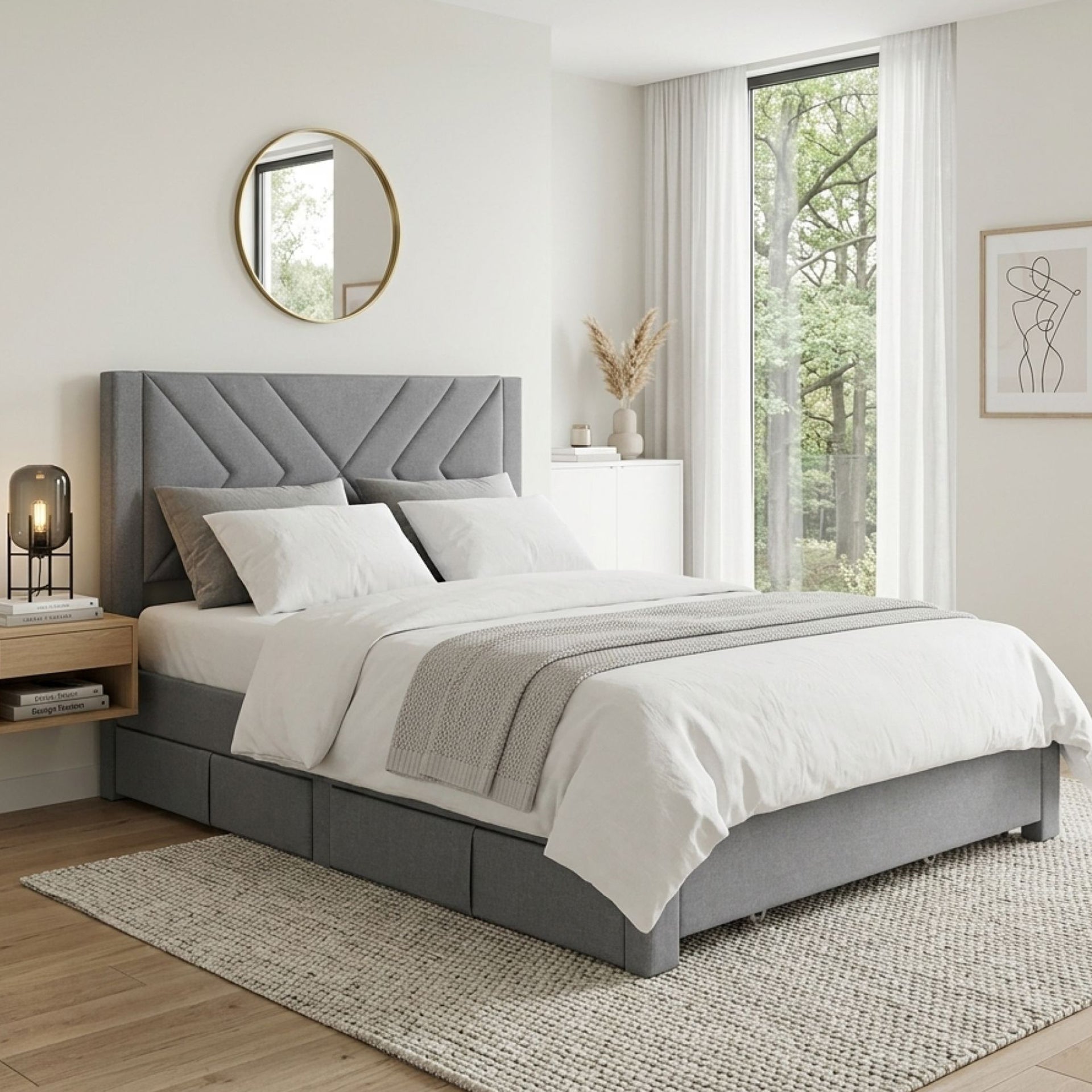 1 x Haydon Double Fabric Bed Frame with 4 Drawers - Light Grey