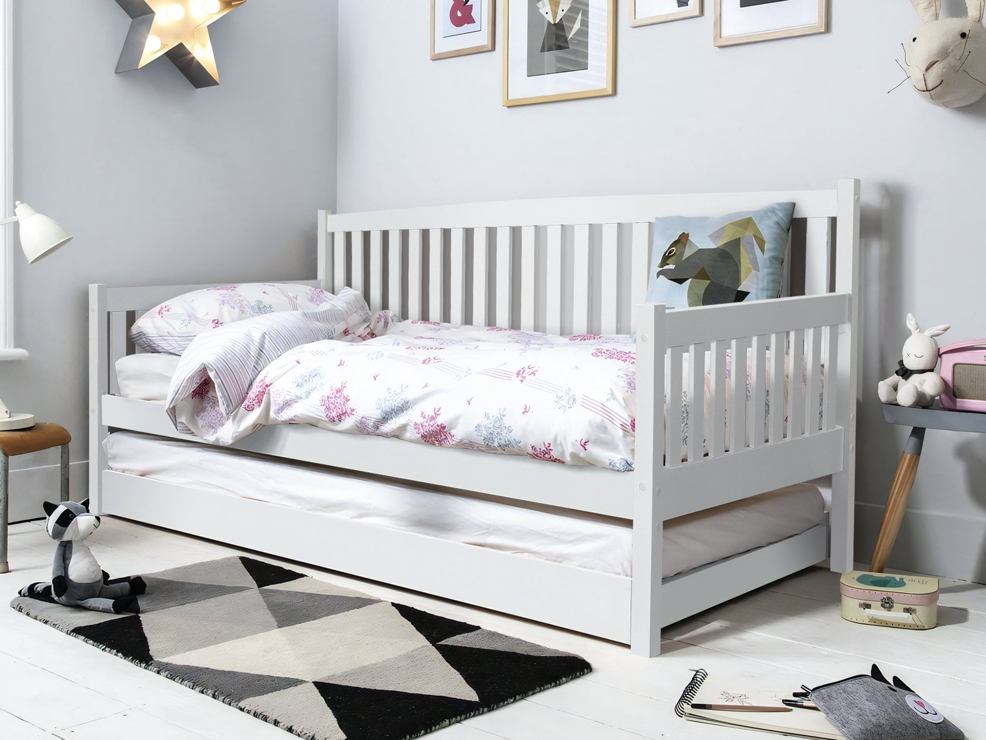 Herbert Single Wooden Trundle Bed Frame - White