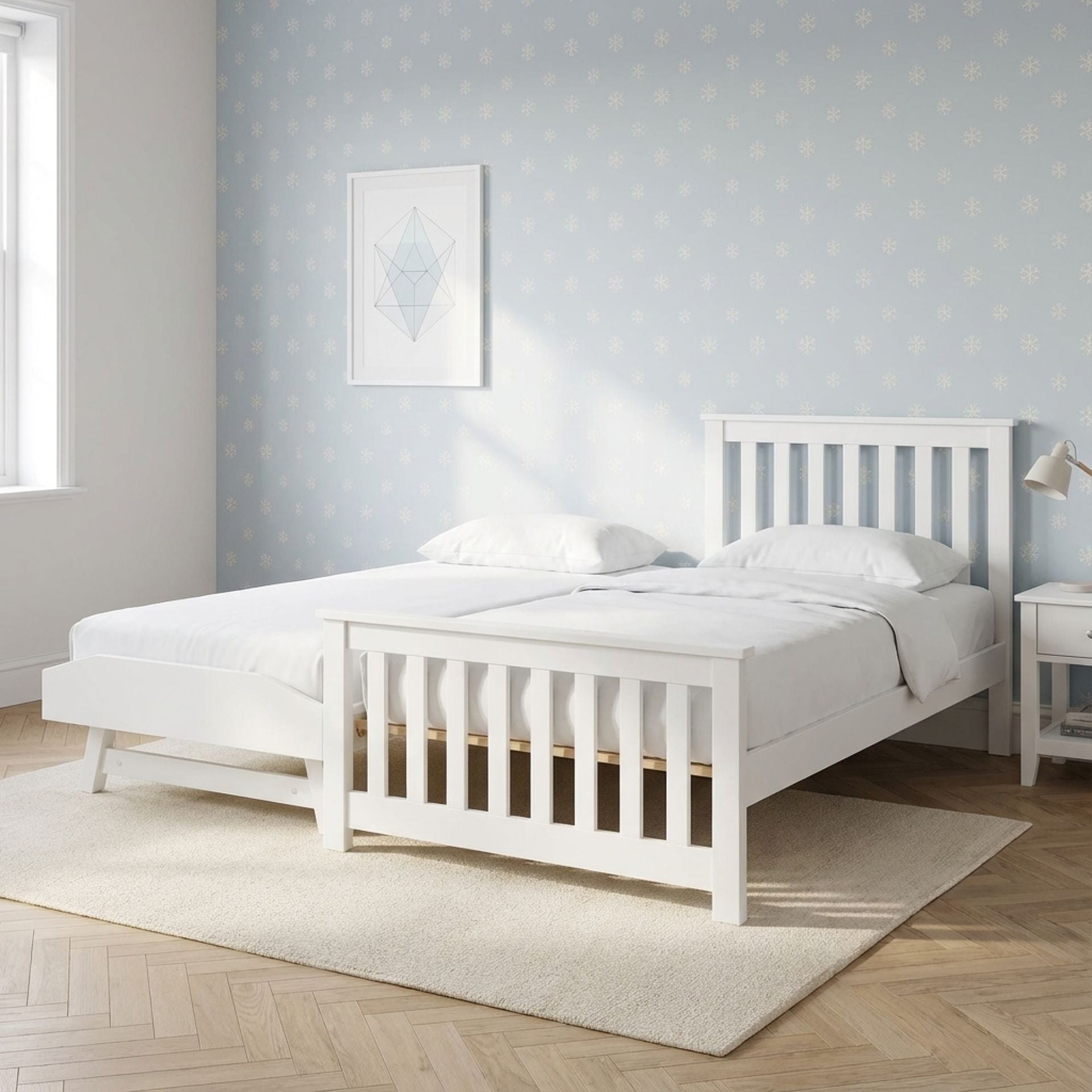 Hobson Single Wooden Trundle Bed Frame - White
