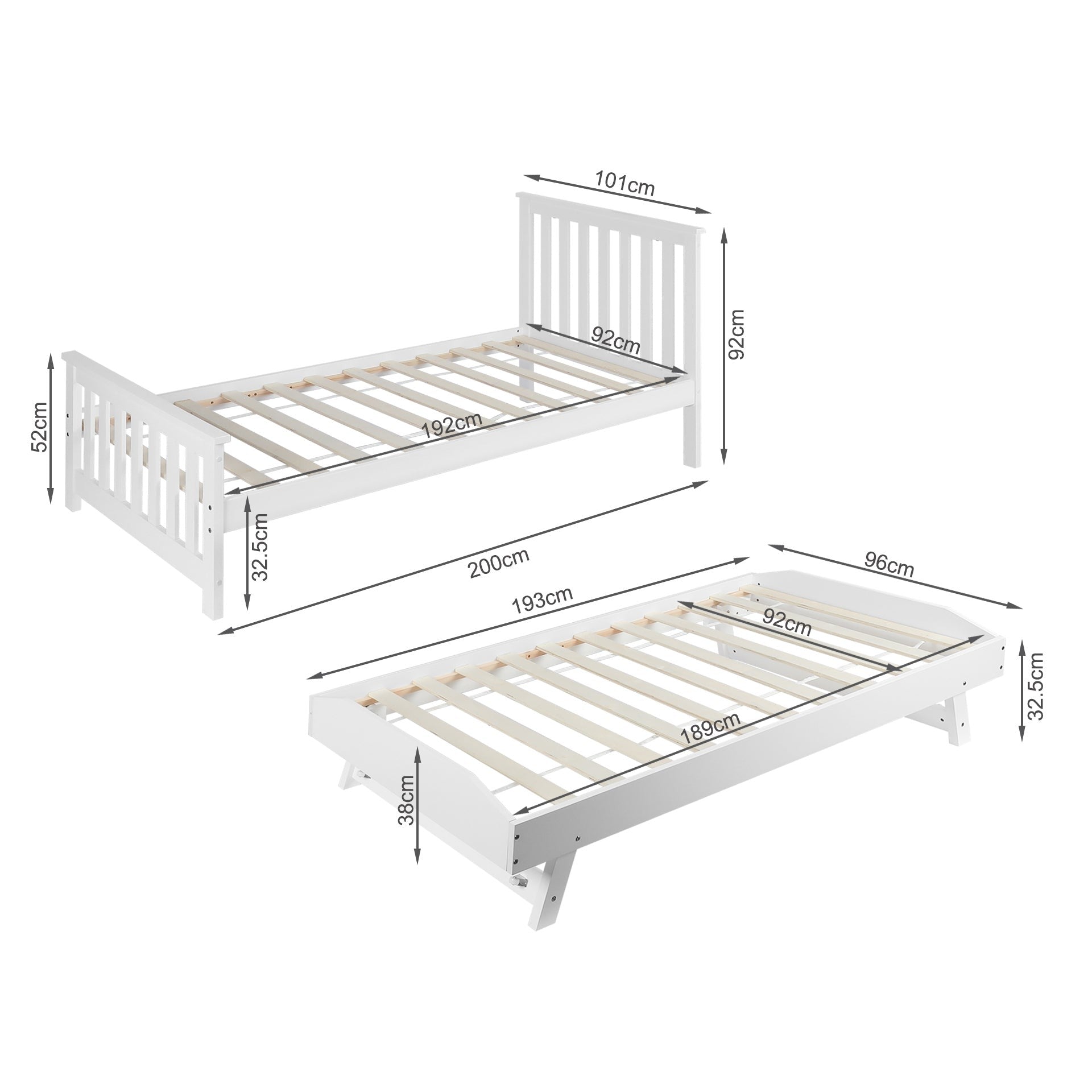 - 100% Brand New HOBSON Single Wooden Trundle Bed Frame - WHITE