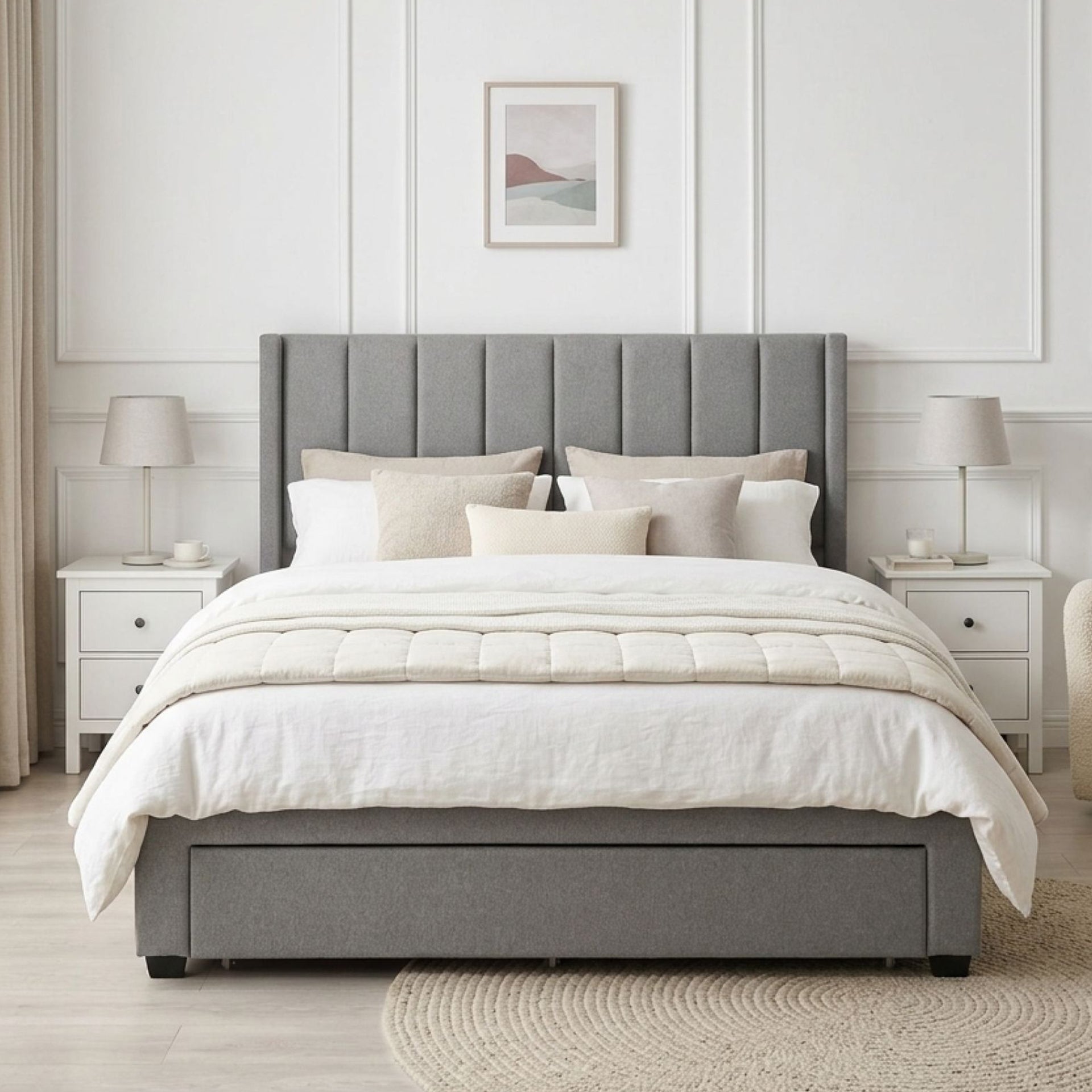 1 x Hopkins Queen Bed Frame with Storage - Light Grey