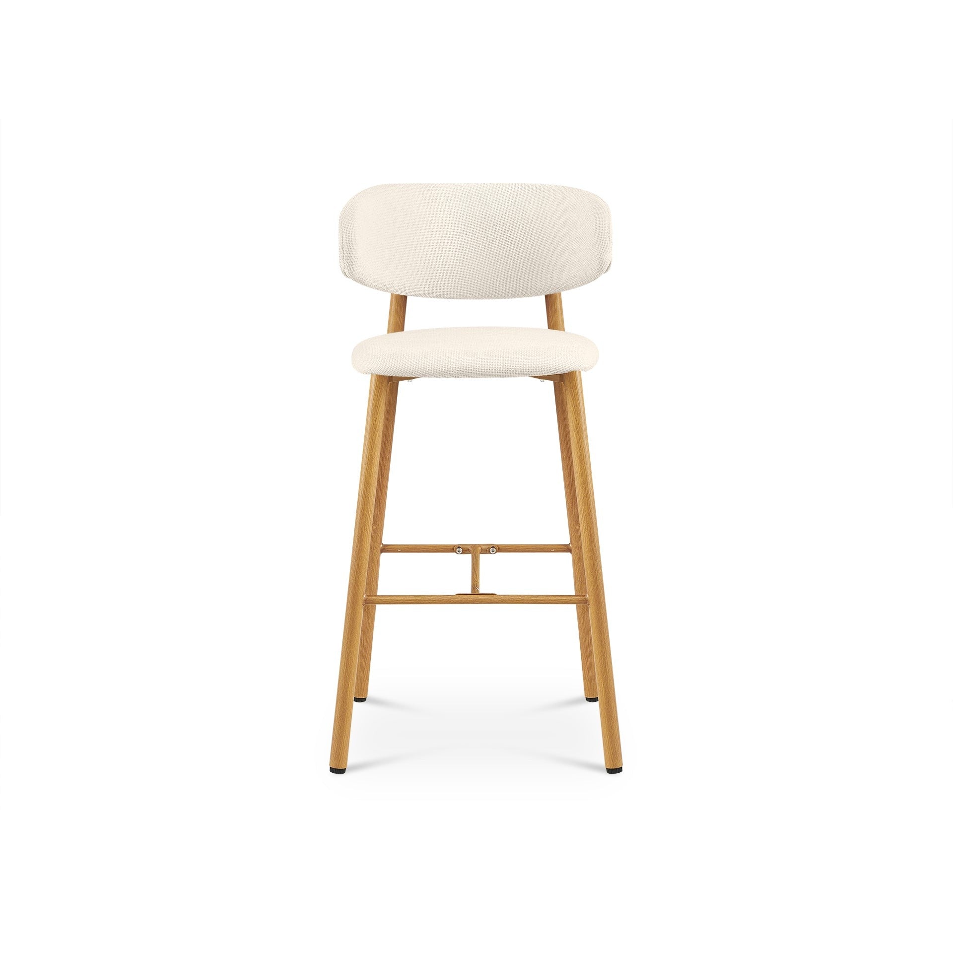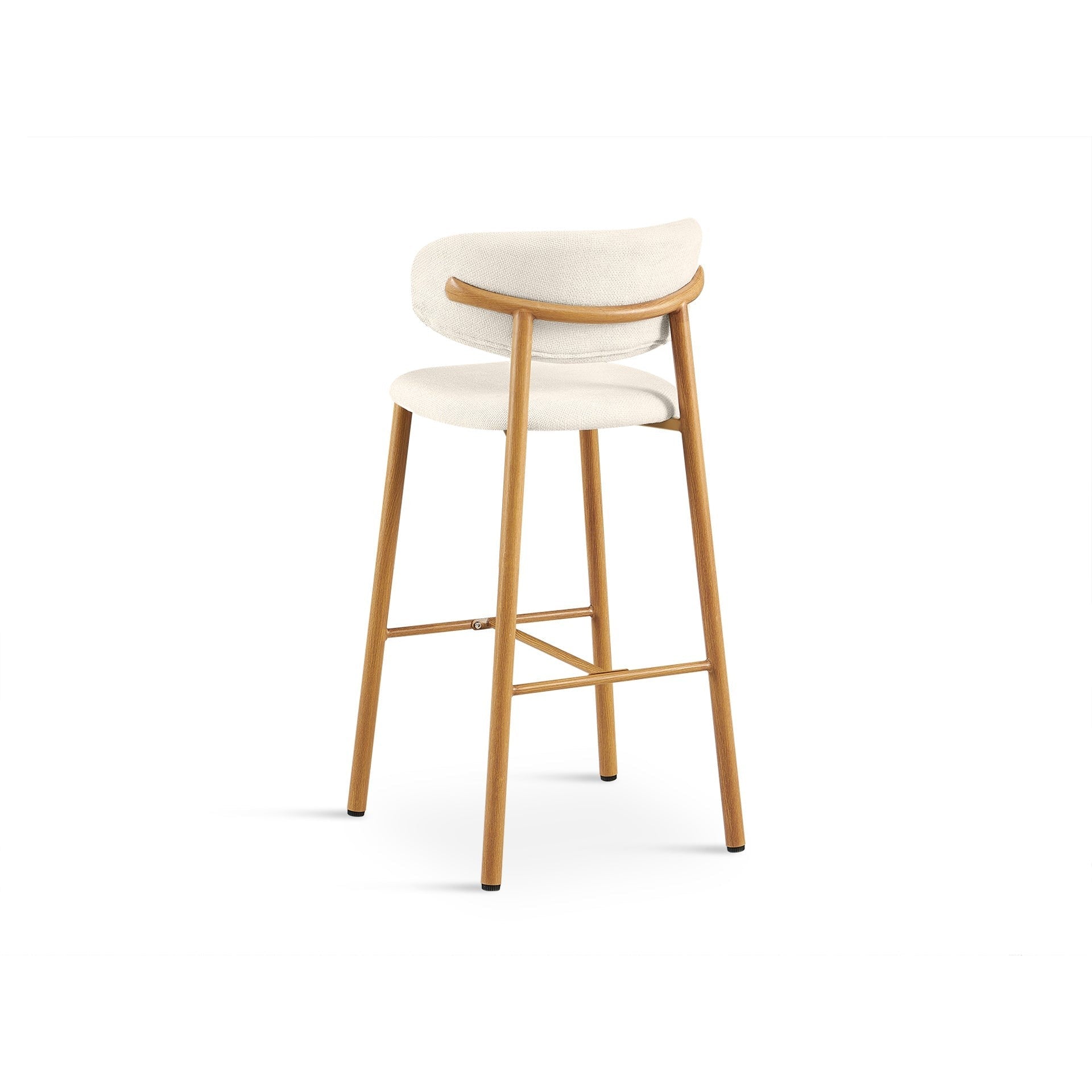 Designed with sophistication in mind, the Indigo Bar Stool features a soft fabric seat for a cosy feel. The sturdy metal legs feature wood grain, blending durability with a natural aesthetic. Compact and versatile, this stool is perfect for enhancing contemporary dining or bar areas.