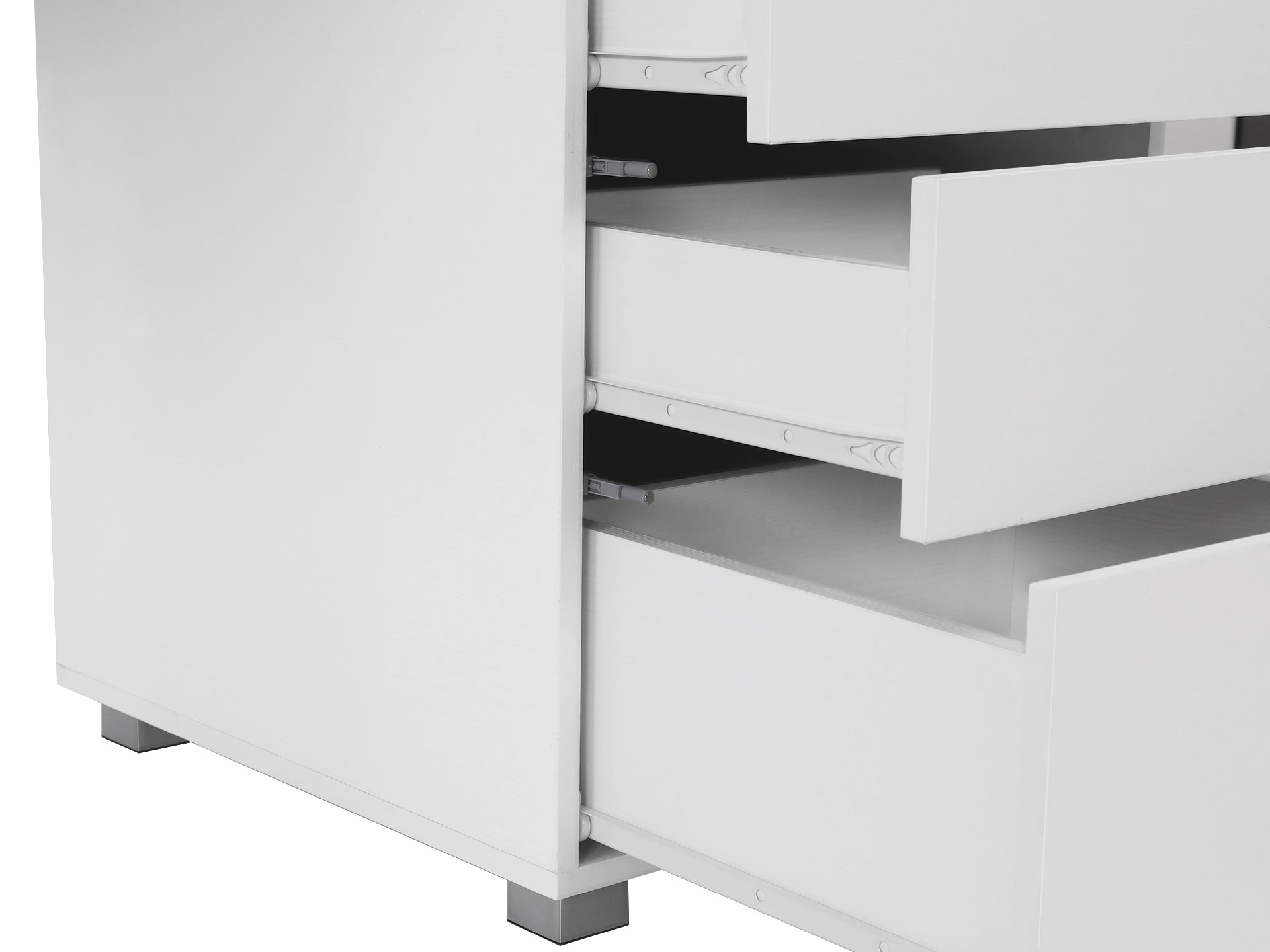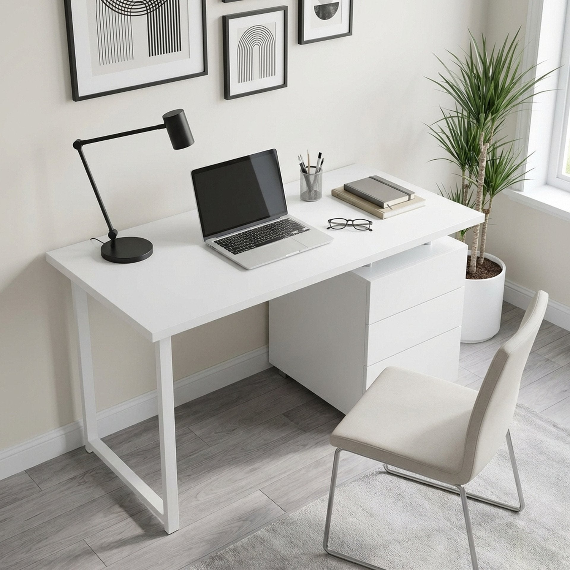 KARTER desk streamlines your workspace with a modern look and compact storage. Made from a metal frame and high-quality wood in a neutral finish, it features an open construction and clean lines that work well in any contemporary setting. Its rectangular tabletop provides an ideal storage workspace for your laptop or computer, as well as notebooks and other writing needs; while the side closed drawers on the side offer plenty of space to tuck away any loose odds and ends that keep your work area more organized. 3 Drawers come with silent push latches, which can be completely handle-free and stand out its clean lines and timeless elegance. Whether you’re working on your next big novel, or just working from home, this computer desk with its simple appearance and amazing function is here to bring the best office experience for you.