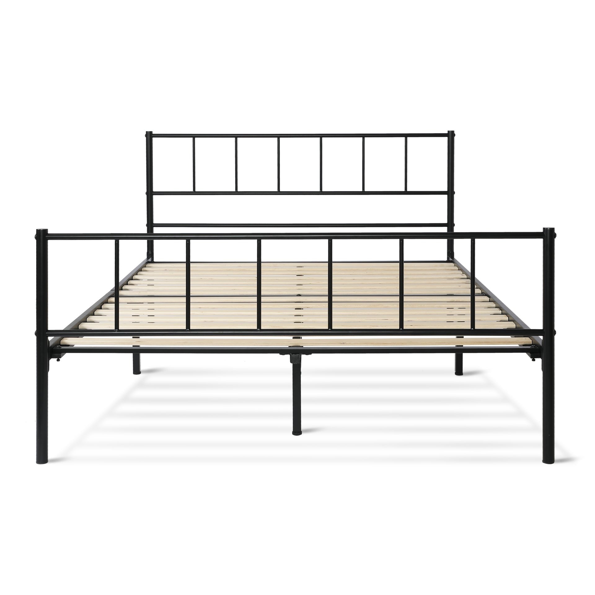 Constructed with robust iron tubes, this frame promises durability and resilience for years to come. Its solid slats provide the perfect foundation for your mattress, while added metal beams and struts reinforce its structure for utmost safety and relaxation. The thoughtful inclusion of a headboard and footboard not only enhances its appeal but also ensures that your mattress remains securely in place, facilitating uninterrupted sleep.