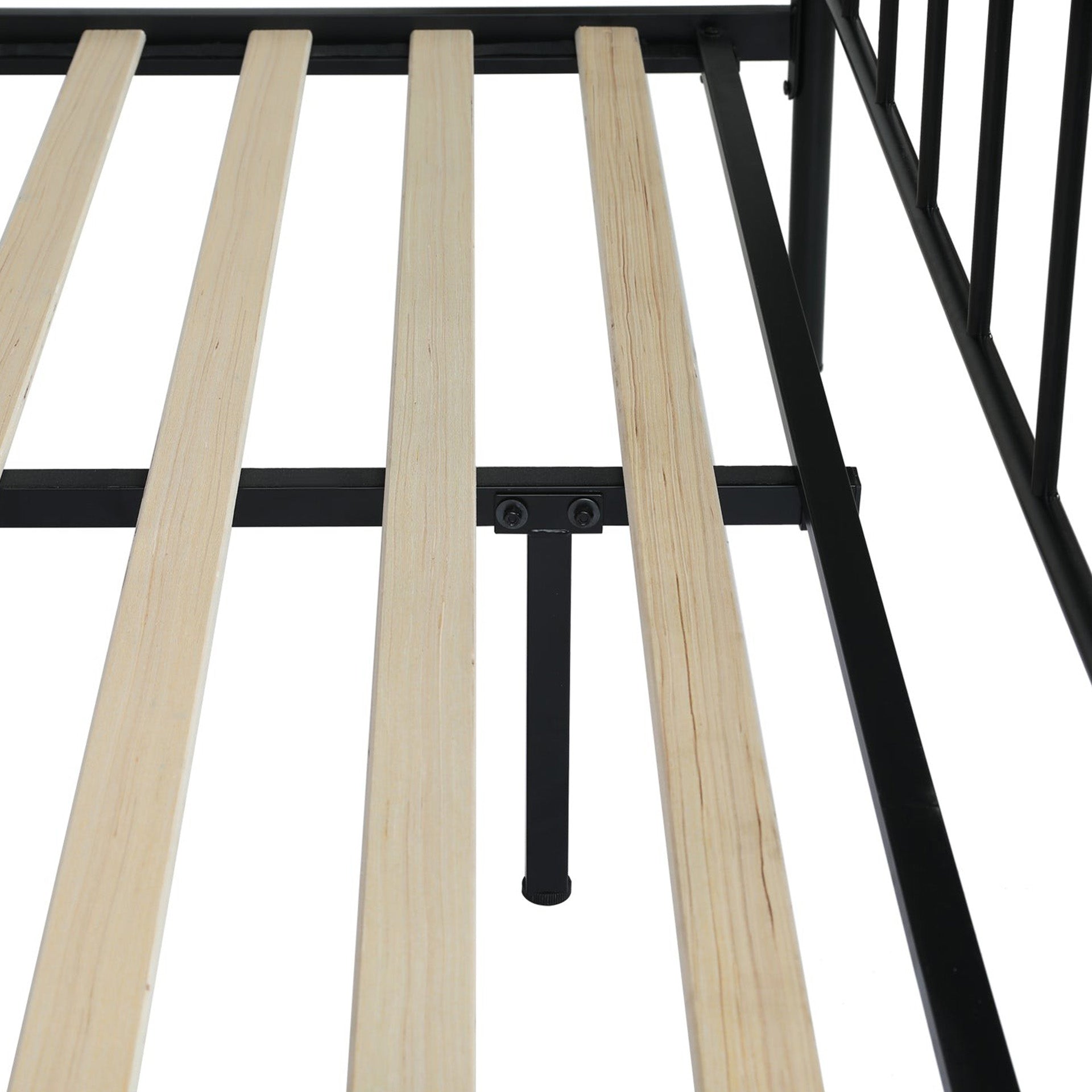 - Material: Iron tube frame / Wooden flat slats / Metal beams & struts