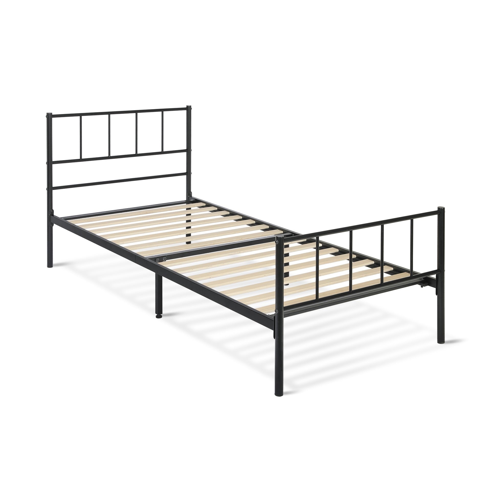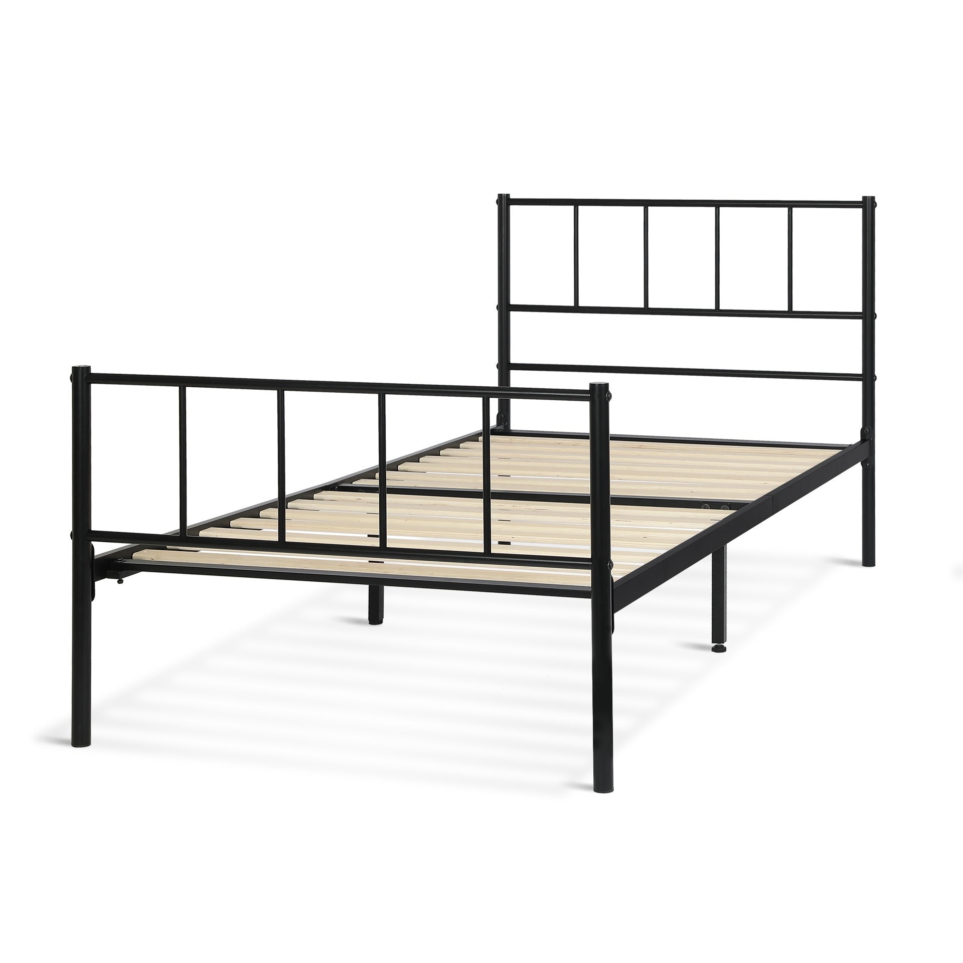 Crafted from sturdy iron tubes, this metal bed frame guarantees long-lasting stability. The solid fixed slats ensure optimum mattress support, while the additional metal beams and struts offer extra reinforcement, ensuring your safety and comfort. The headboard and footboard provide essential body protection and keep your mattress securely in place, ensuring a cozy and undisturbed slumber.