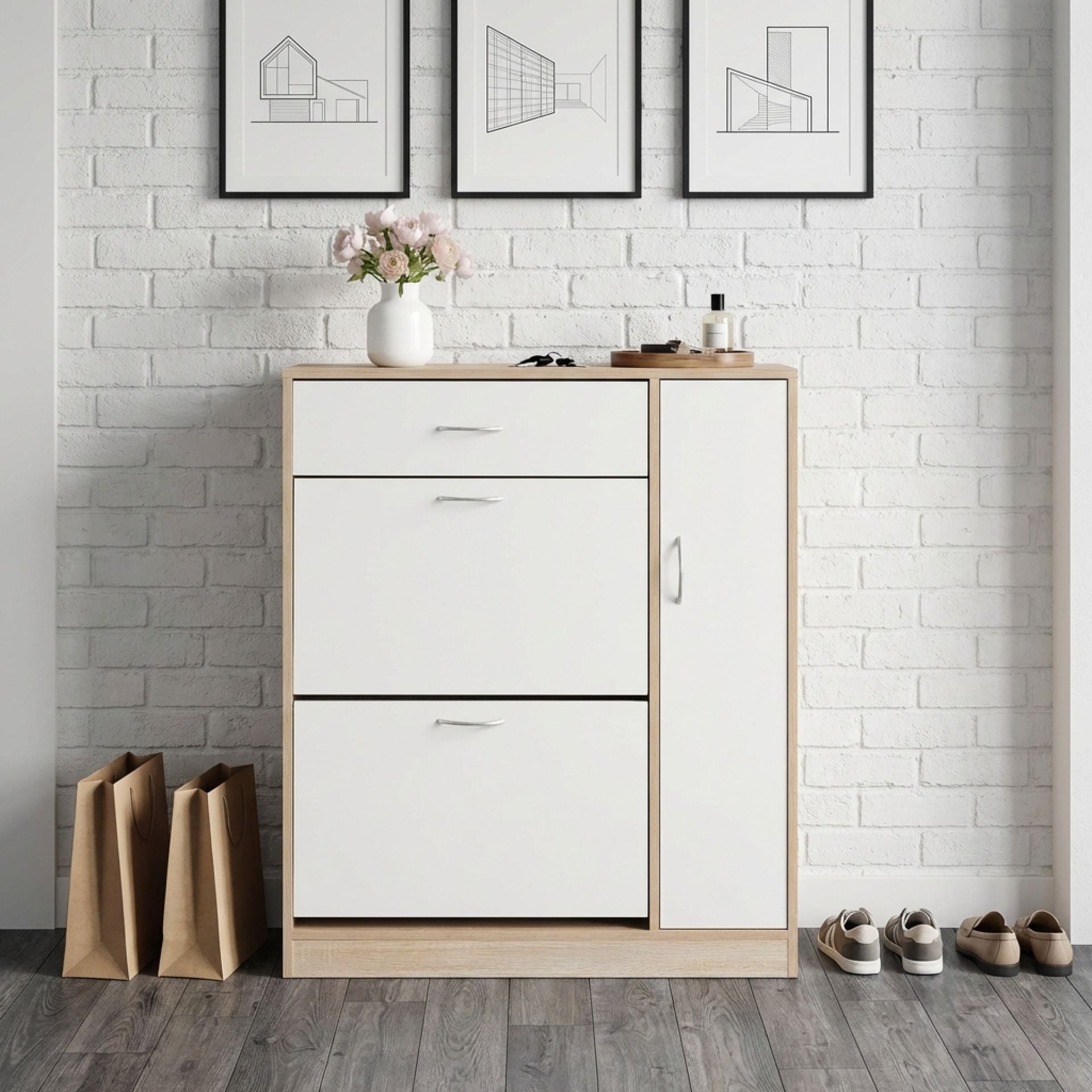 Organise and save your floor space with this Kihona 3 Drawer Shoe Cabinet Storage keeps your entryway free of messy shoe piles and ensures you quick clean-up.