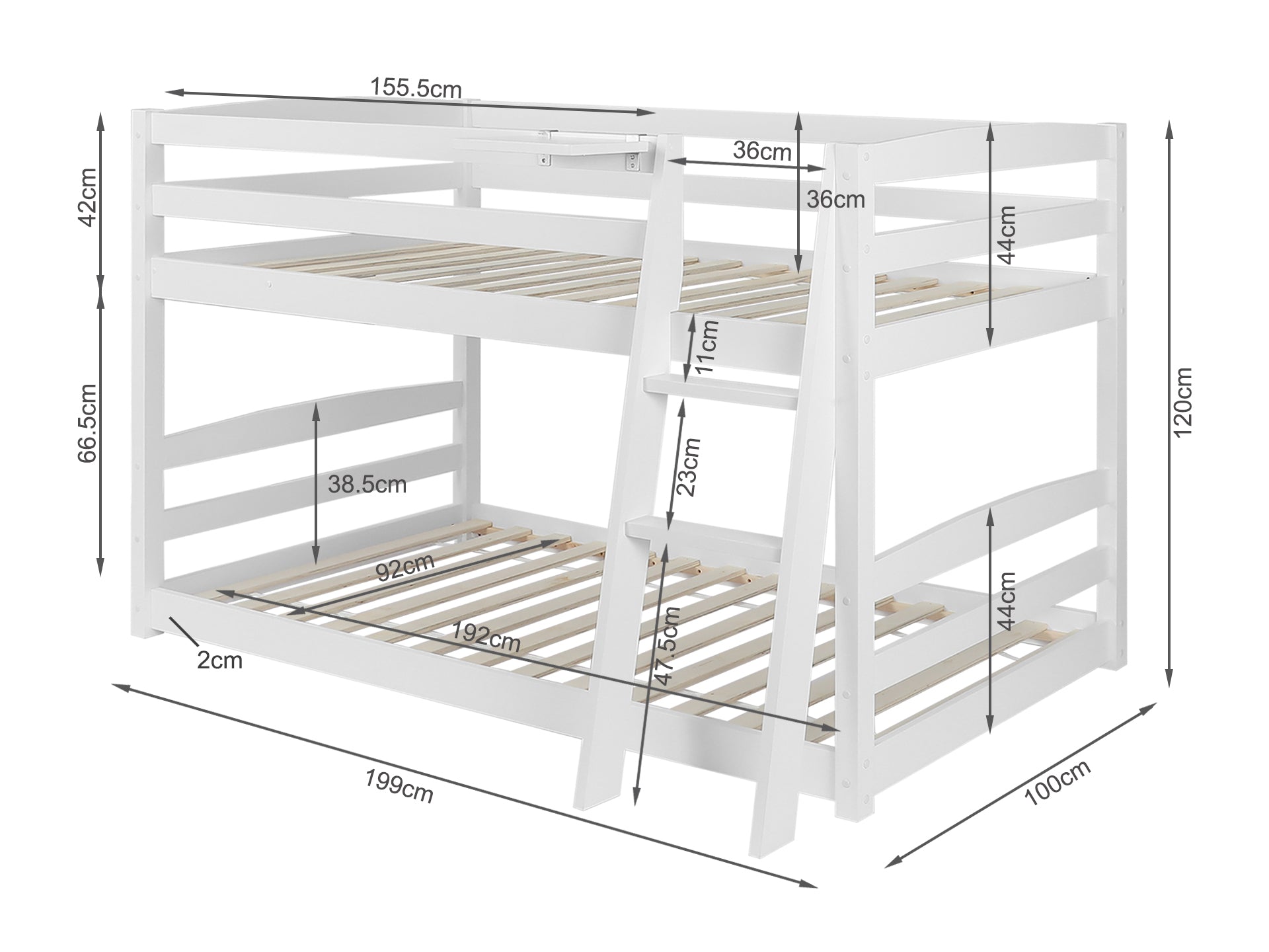 Enjoy a fun and adorable space for your kids with KINGA Single bunk bed, and if you have two kids at home and want both of them to sleep in the same bedroom, this wooden bed will be a great choice for you. To start with, it is made of high-quality pine wood and its strong and durable frame ensures that it will be stable and durable for long-term use; with a weathered, neutral hue, and it's accented with shiplap detailing for a coastal look we love. A built-in ladder makes it easy to access the top bunk, while support rails add an extra layer of safety. Not only that, but it also comes with a handy storage shelf on the top rails that can put important items such as mobile phones next to the bed.